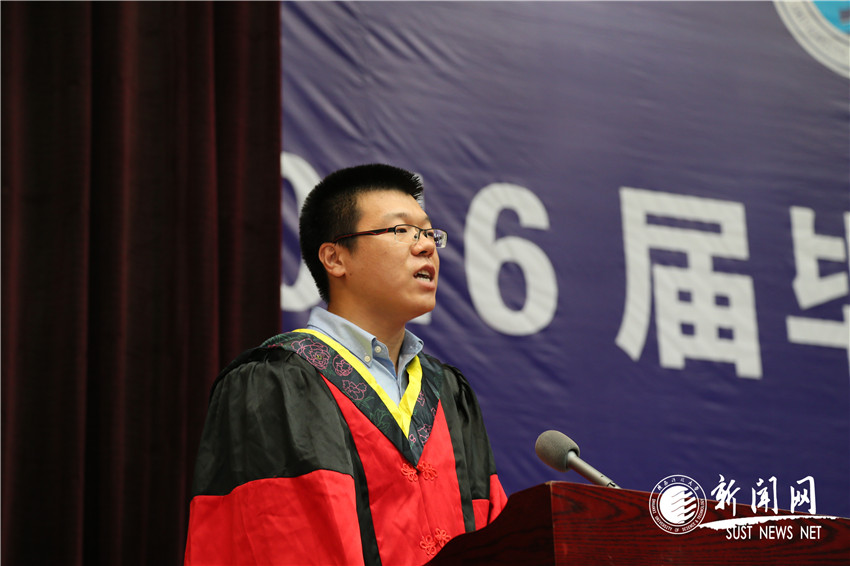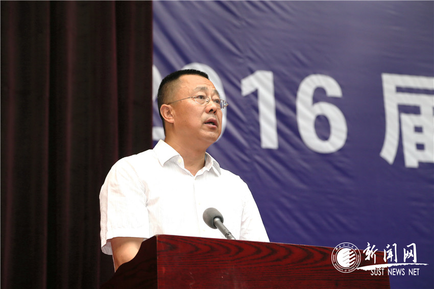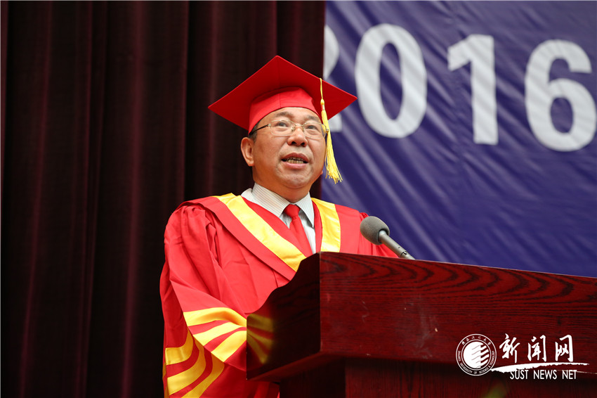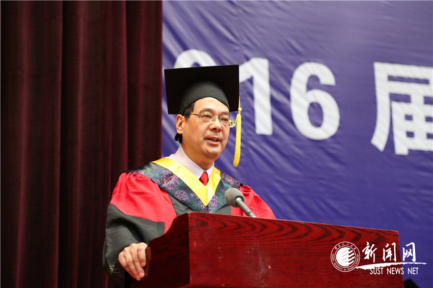 校長姚書志以“努力做一個(gè)高尚純粹的人”為題致辭,為畢業(yè)生獻(xiàn)上誠摯的祝賀和祝福。他深情回顧了2016屆畢業(yè)生作為建校歷史上人數(shù)最多的一級(jí)大學(xué)生與學(xué)校共同成長的點(diǎn)點(diǎn)滴滴,感謝同學(xué)們的包容、理解和支持,并為能夠與同學(xué)們一起與陜西科技大學(xué)攜手前行感到驕傲和自豪!
