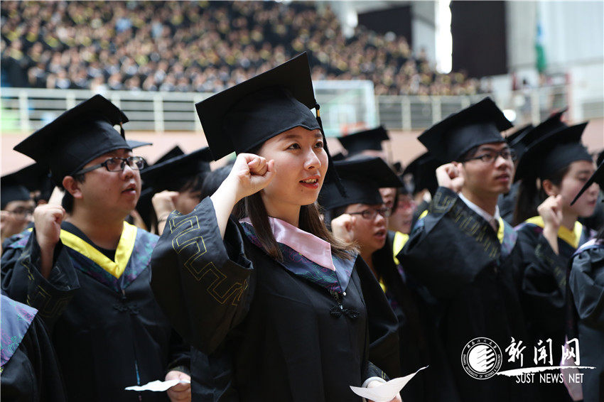 “秉承至誠至博校訓(xùn),銘記師長教誨,弘揚(yáng)科大精神,團(tuán)結(jié)勤奮、求實(shí)創(chuàng)新,用才華和智慧肩負(fù)起民族復(fù)興的使命,用青春和熱血承擔(dān)起國家富強(qiáng)的責(zé)任。今日我以科大為榮,明日科大以我為榮!”全體畢業(yè)生的朗朗誓言響徹全場,畢業(yè)典禮在承載著希望和祝福中落下帷幕。