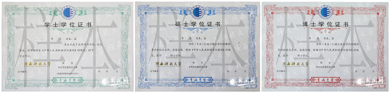 獲得博士、碩士、學(xué)士學(xué)位的畢業(yè)生代表一一登上主禮臺(tái),接受校領(lǐng)導(dǎo)撥穗并頒授學(xué)位證書。值得一提的是,這些學(xué)位證書一改往年全國統(tǒng)一的“大眾臉”,其上印制有“青出于藍(lán)勝于藍(lán)”隱喻的校徽和“至誠至博”校訓(xùn),獨(dú)具我校特色。2016屆畢業(yè)生在收獲這一小小驚喜的同時(shí),也成為我校個(gè)性化學(xué)位證書的首批使用者。