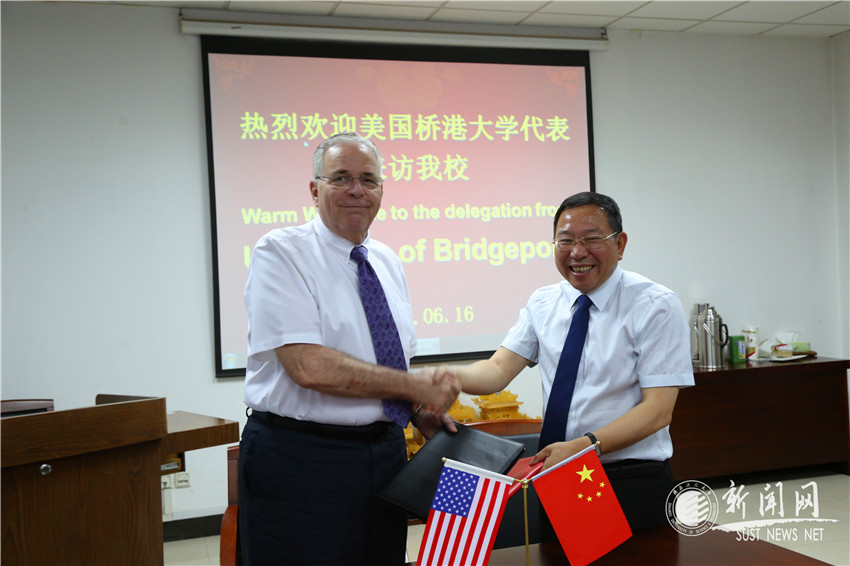 為加強(qiáng)我校與美國橋港大學(xué)合作開展科研項(xiàng)目,本科、碩士生短期交流,教師訪學(xué),學(xué)術(shù)交流等工作,6月16日,我校與美國橋港大學(xué)在逸夫樓舉行合作備忘錄簽約儀式,校長姚書志與美國橋港大學(xué)校長尼爾· 薩洛寧簽訂《合作備忘錄》。黨委副書記楊欲曉主持簽約儀式。
