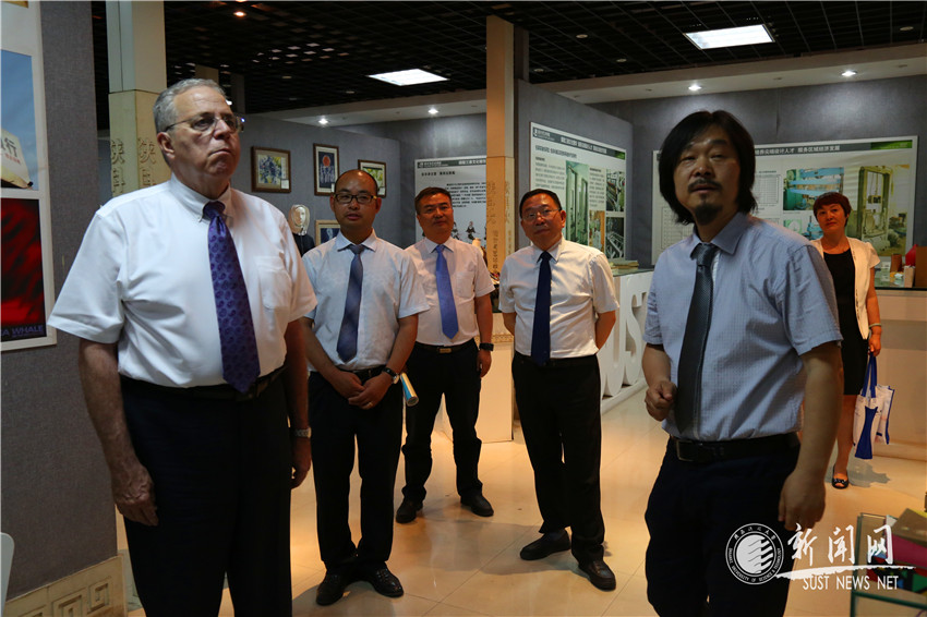 座談結(jié)束后, 尼爾· 薩洛寧、校長助理翁新龍?jiān)谝?、楊欲曉等的陪同下,參觀了設(shè)計(jì)與藝術(shù)學(xué)院特色展室、機(jī)電工程學(xué)院實(shí)驗(yàn)室和學(xué)生實(shí)踐中心。