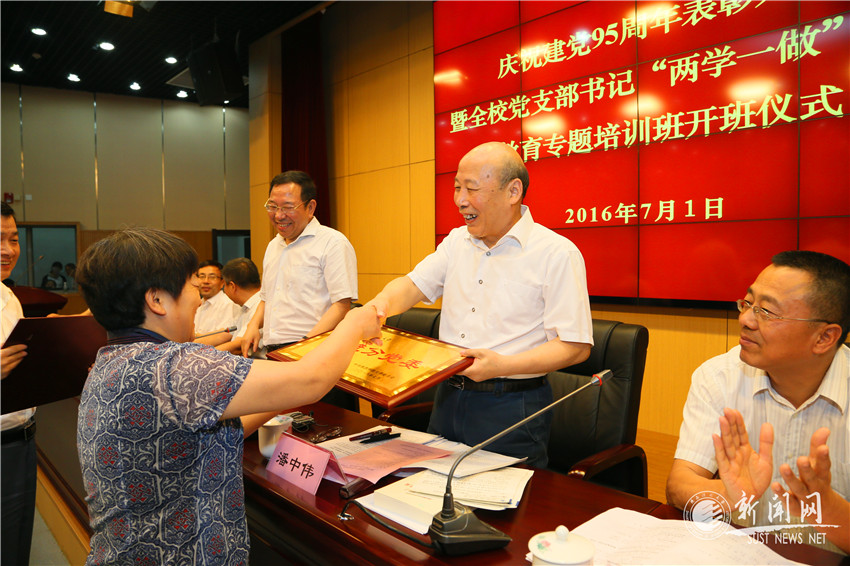 為慶祝建黨95周年,持續(xù)推進(jìn)“兩學(xué)一做”學(xué)習(xí)教育,我校于7月1日在圖書(shū)館學(xué)術(shù)報(bào)告廳隆重舉行慶祝建黨95周年表彰大會(huì),黨委書(shū)記潘中偉在全校黨支部書(shū)記“兩學(xué)一做”學(xué)習(xí)教育專題培訓(xùn)班開(kāi)班儀式上講授專題黨課。黨委副書(shū)記、校長(zhǎng)姚書(shū)志主持表彰大會(huì)及開(kāi)班儀式。