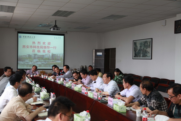 姚書志代表學校向高繼平一行蒞臨我校進行調(diào)研表示熱烈歡迎,并介紹了學校的基本情況。他希望西安科技局今后繼續(xù)大力支持我校的科研工作,推動學校科研成果服務西安地方經(jīng)濟發(fā)展上新臺階。