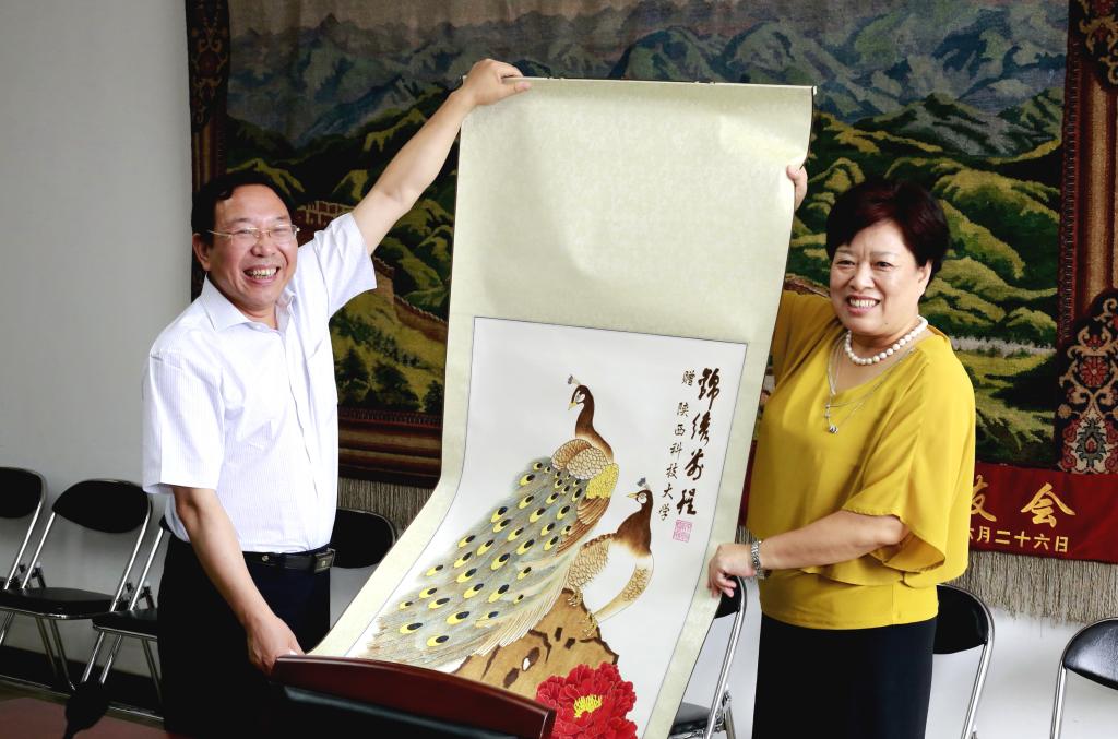 劉榮英代表南陽理工學(xué)院向我校贈(zèng)送了極富南陽文化特色的烙畫。