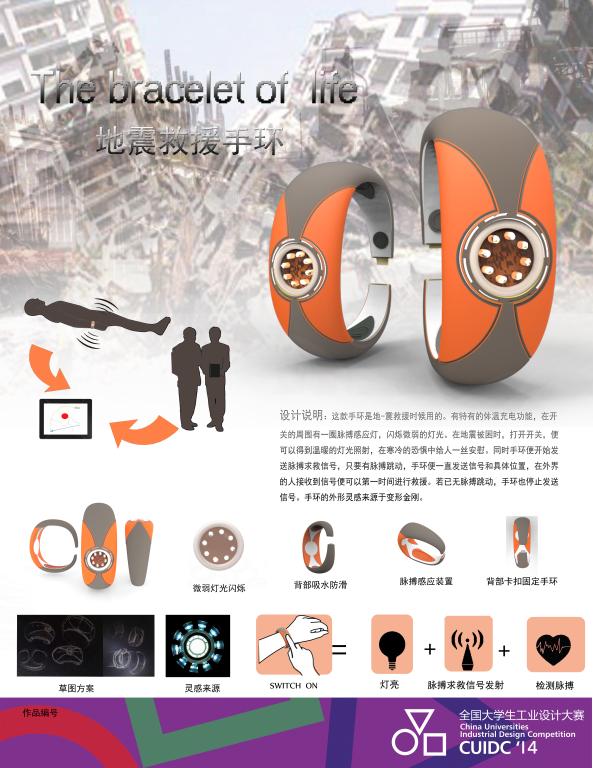 陜西省工業(yè)設(shè)計大賽二等獎作品《地震救援手環(huán)》