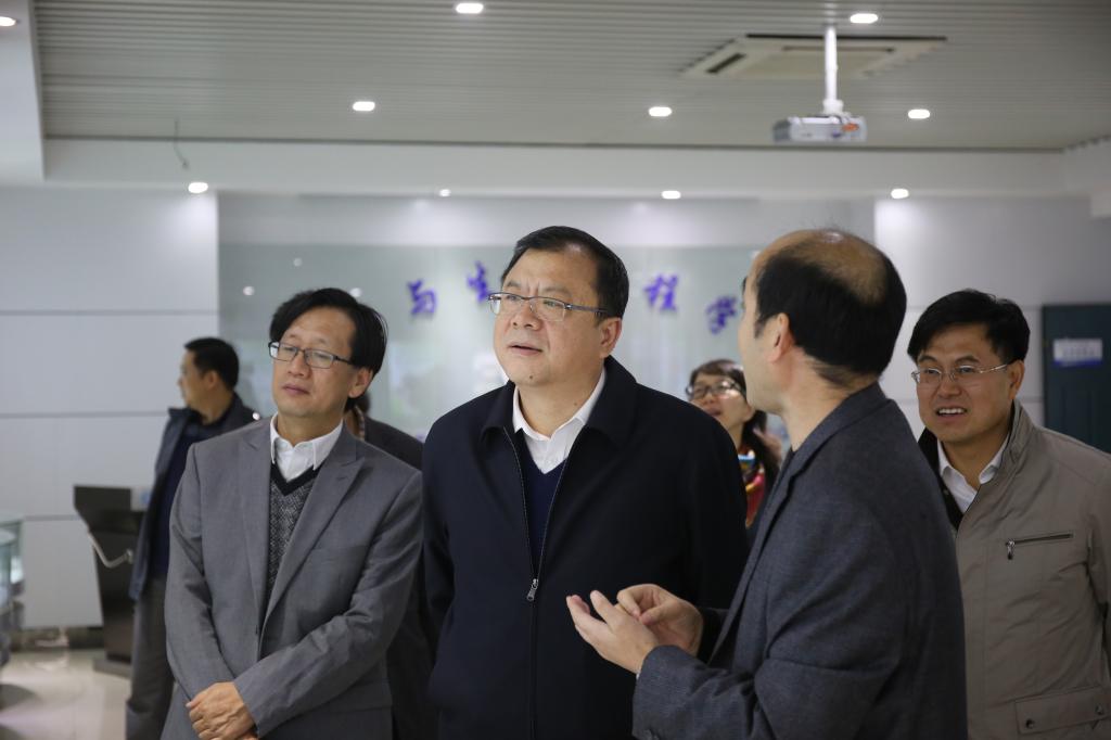 盧建軍一行來校后,先后參觀了陜西省平板顯示中心、我校食品與生物工程學(xué)院、資源與環(huán)境學(xué)院、輕工與能源學(xué)院的特色展廳,詳細(xì)了解了相關(guān)學(xué)科建設(shè)情況,并就重大科研項(xiàng)目的研究現(xiàn)狀、應(yīng)用前景、成果轉(zhuǎn)化、校企合作等方面問題進(jìn)行了深入調(diào)研。