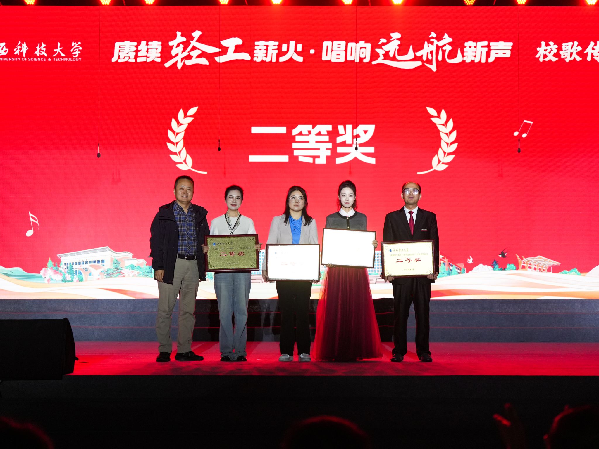 本次活動特邀校歌《遠航》曲作者、西安音樂學院作曲系二級教授陳大明等多位專家及校內(nèi)職能部門代表擔任評委。由全校15個學院師生組成的合唱隊依次登臺,以校歌《遠航》為必選曲目,輔以各具特色的自選歌曲,融合朗誦、舞蹈、器樂、情景表演等多種形式,展現(xiàn)各學院賡續(xù)輕工薪火、凝聚師生力量的價值追求,用嘹亮歌聲凝聚起砥礪輕工報國、矢志“雙一流”建設(shè)的磅礴力量。