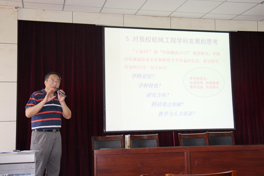 報告開始,曹巨江教授首先提出我國機(jī)械裝備制造業(yè)面臨的機(jī)遇與挑戰(zhàn)以及如何發(fā)展的問題,然后就“工業(yè)4.0”和“中國制造2025”的概念與戰(zhàn)略要點(diǎn)進(jìn)行了解讀。隨后,他結(jié)合學(xué)校和學(xué)院的實(shí)際情況,引導(dǎo)全院教師在認(rèn)清形勢、把握機(jī)遇、繼承發(fā)展、突出特色的基礎(chǔ)上對我校機(jī)械工程學(xué)科發(fā)展進(jìn)行思考。