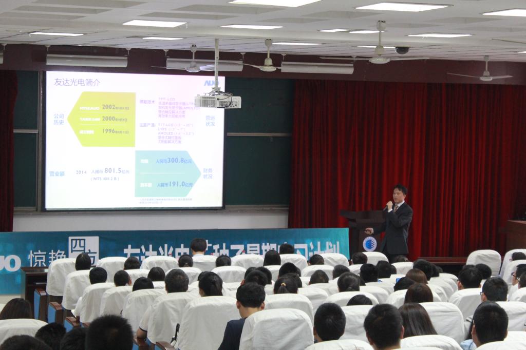 友達(dá)光電有限公司是全球前三、臺灣第一大薄膜晶體管液晶顯示器(TFT- LCD)設(shè)計(jì)、研發(fā)及制造公司,與我校一直保持著良好的合作關(guān)系。友達(dá)光電從2002年起每年都要從我校大三學(xué)生中招募暑期實(shí)習(xí)生,為企業(yè)提前選拔培育未來精英,同時(shí)也為鍛煉學(xué)生的實(shí)踐能力和綜合素質(zhì)提供了良好的平臺。