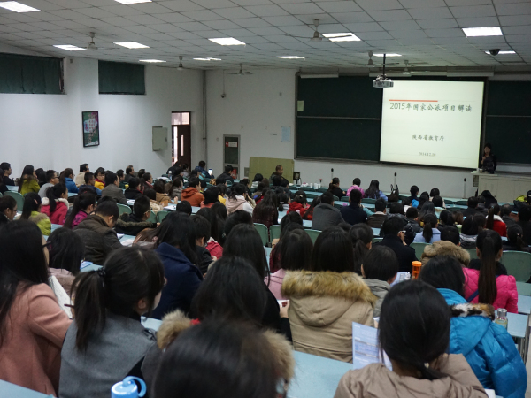 我校2015年國家公派出國留學可利用項目宣講會12月10日舉辦,省教育廳國際合作與交流處專家應邀解讀政策、現(xiàn)場答疑,教師和學生代表熱情高漲,積極參會聆聽。