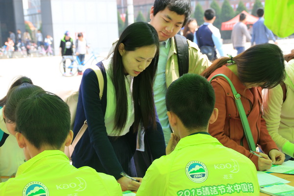 11日上午,環(huán)境保護部宣傳教育中心、花王(中國)投資有限公司、省環(huán)境保護部宣傳教育中心、陜西省環(huán)保志愿者聯合會、陜西環(huán)保沙龍等相關機構的負責人來到活動現場指導,并與我校志愿者進行了親切交談。他們對活動現場的益微青團志愿者們手繪的節(jié)水涂鴉海報給予了高度贊揚,對志愿者們的辛勤工作給予高度肯定。