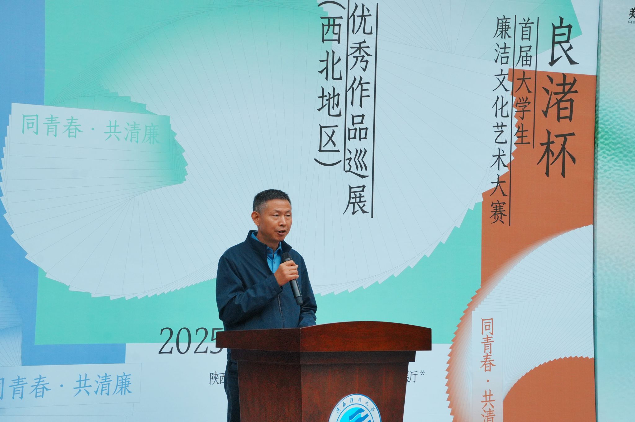 9月19日上午,“良渚杯”首屆大學(xué)生廉潔文化藝術(shù)大賽優(yōu)秀作品西北地區(qū)巡展、我校第六屆廉潔文化藝術(shù)大賽優(yōu)秀作品展開幕式在人文樓前廣場舉辦。省紀(jì)委監(jiān)委駐省教育廳紀(jì)檢監(jiān)察組副組長呂少軍,中國美術(shù)學(xué)院黨委委員、紀(jì)委書記、監(jiān)察專員陳于杰,我校黨委副書記、紀(jì)委書記、監(jiān)察專員羅瑩出席開幕式。開幕式由設(shè)計(jì)與藝術(shù)學(xué)院院長劉宗明主持。