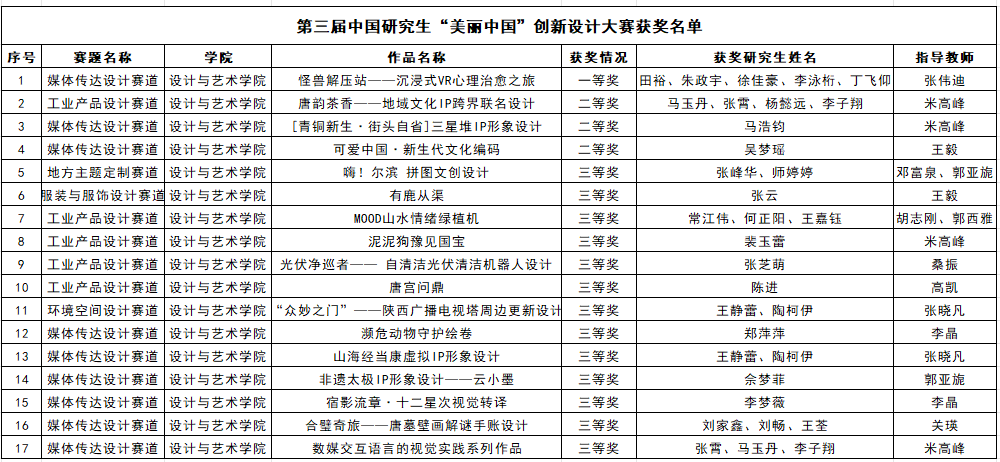 陜西科技大學(xué)在第三屆中國研究生“美麗中國”創(chuàng)新設(shè)計(jì)大賽全國總決賽中斬獲佳績