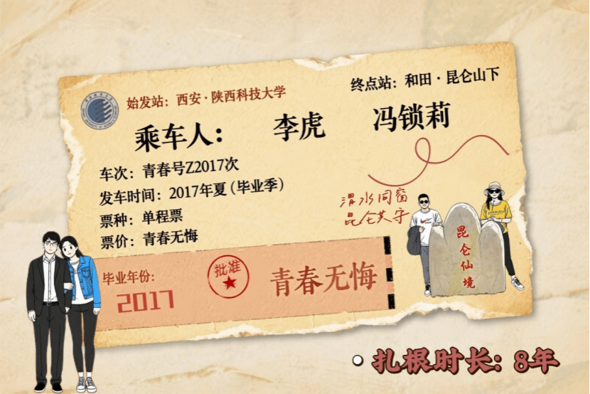 幾乎沒(méi)有猶豫,李虎毅然解除了國(guó)企協(xié)議。兩張簽往和田的就業(yè)協(xié)議,將“畢業(yè)即分手”的憂慮,化作了“畢業(yè)即相守”的篤定。2017年7月18日,前往和田的列車自西安站駛離,李虎與馮鎖莉的愛(ài)情和理想,終在祖國(guó)的西陲找到了交匯點(diǎn):新疆和田。