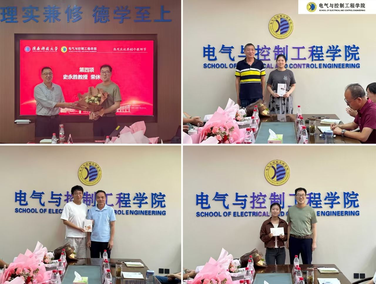 會議以教育家精神為引領,全面落實立德樹人根本任務為出發(fā)點,表彰了從教滿20年和30年教師代表及一批學院工作業(yè)績突出的先進個人。學院向受表彰教師送上了鮮花、紀念獎牌和榮譽證書。喬明哲表示,過去的一年我院教師在教學、大學生科技創(chuàng)新、學科競賽、科研方面均取得了不斷進步和可喜成績,希望全體教師向先進榜樣學習,弘揚踐行教育家精神,傳承電控人的敬業(yè)奉獻、踏實篤行作風,涵養(yǎng)高尚師德師風。