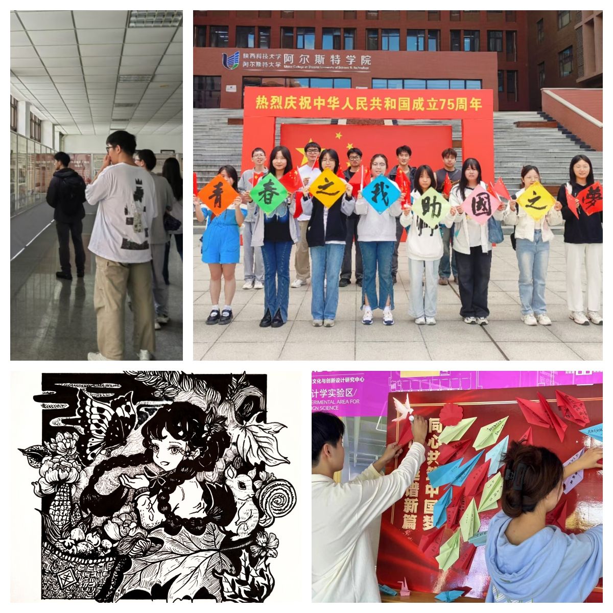 學院團委策劃組織“丹青繪就愛國情、活力奔跑頌國昌、深情告白訴衷腸、光影留痕記華彩、志愿奉獻展擔當、光影憶史銘初心、紅歌嘹亮頌輝煌”等系列活動向祖國致敬。同時,與西安美術(shù)學院跨校聯(lián)合開展“喜迎國慶,‘帽’畫中國”手繪帽大賽,引導廣大青年全方位參與到慶祝共和國華誕的行動中,充分激發(fā)了基層團組織活力。