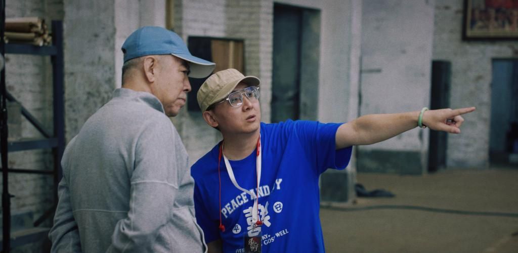 張珂(右一)與陳凱歌導(dǎo)演在片場