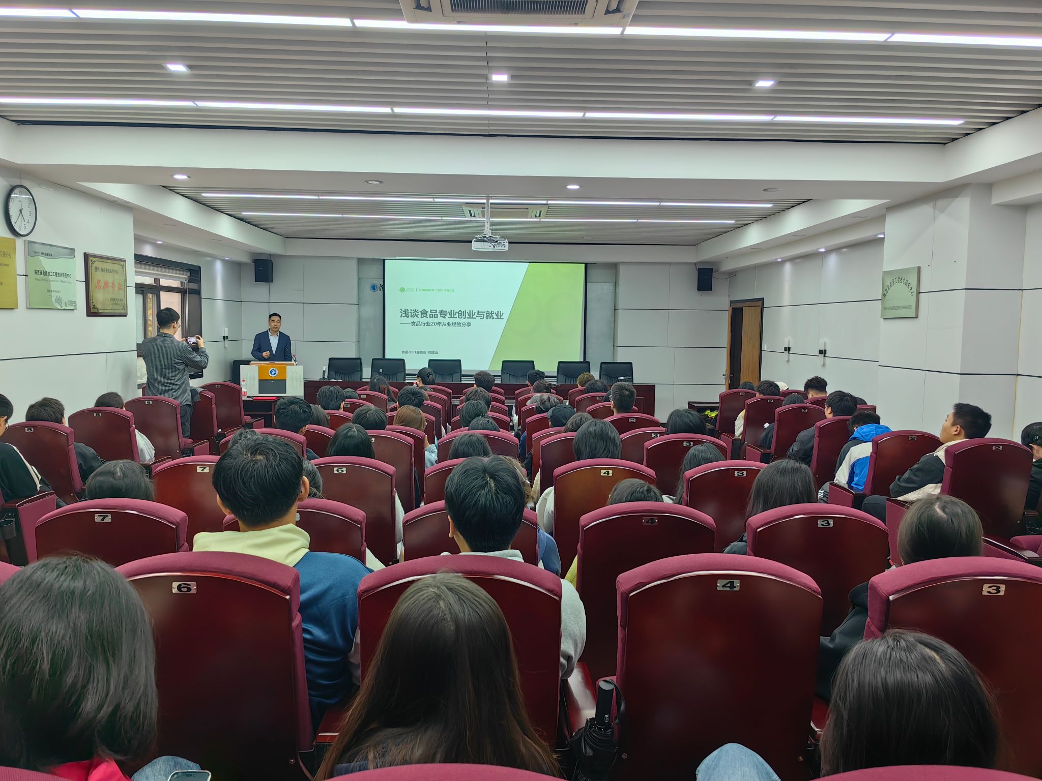 為培養(yǎng)新生的專(zhuān)業(yè)認(rèn)同感和職業(yè)使命感,10月30日,食品科學(xué)與工程學(xué)院(生物與醫(yī)藥學(xué)院)邀請(qǐng)食品2001屆校友、必優(yōu)食品科技(江蘇)有限公司董事長(zhǎng)周建山為新生作題為《食品專(zhuān)業(yè)創(chuàng)業(yè)與就業(yè)》的主題講座。食品科學(xué)與工程學(xué)院黨委副書(shū)記孫敏、2024級(jí)輔導(dǎo)員閆明佳及全體食品科學(xué)與工程類(lèi)專(zhuān)業(yè)新生參加。