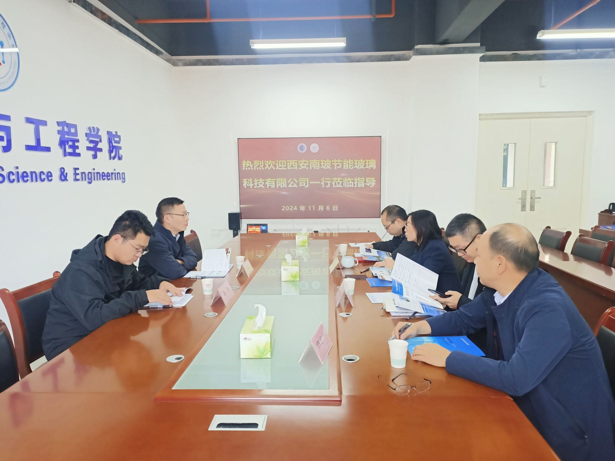 11月6日上午,西安南玻節(jié)能玻璃科技有限公司研發(fā)技術(shù)部經(jīng)理黃成龍一行赴我校材料科學(xué)與工程學(xué)院(文物保護科學(xué)與技術(shù)學(xué)院)開展交流洽談。材料學(xué)院副院長王卓及相關(guān)教師參加了交流座談活動。