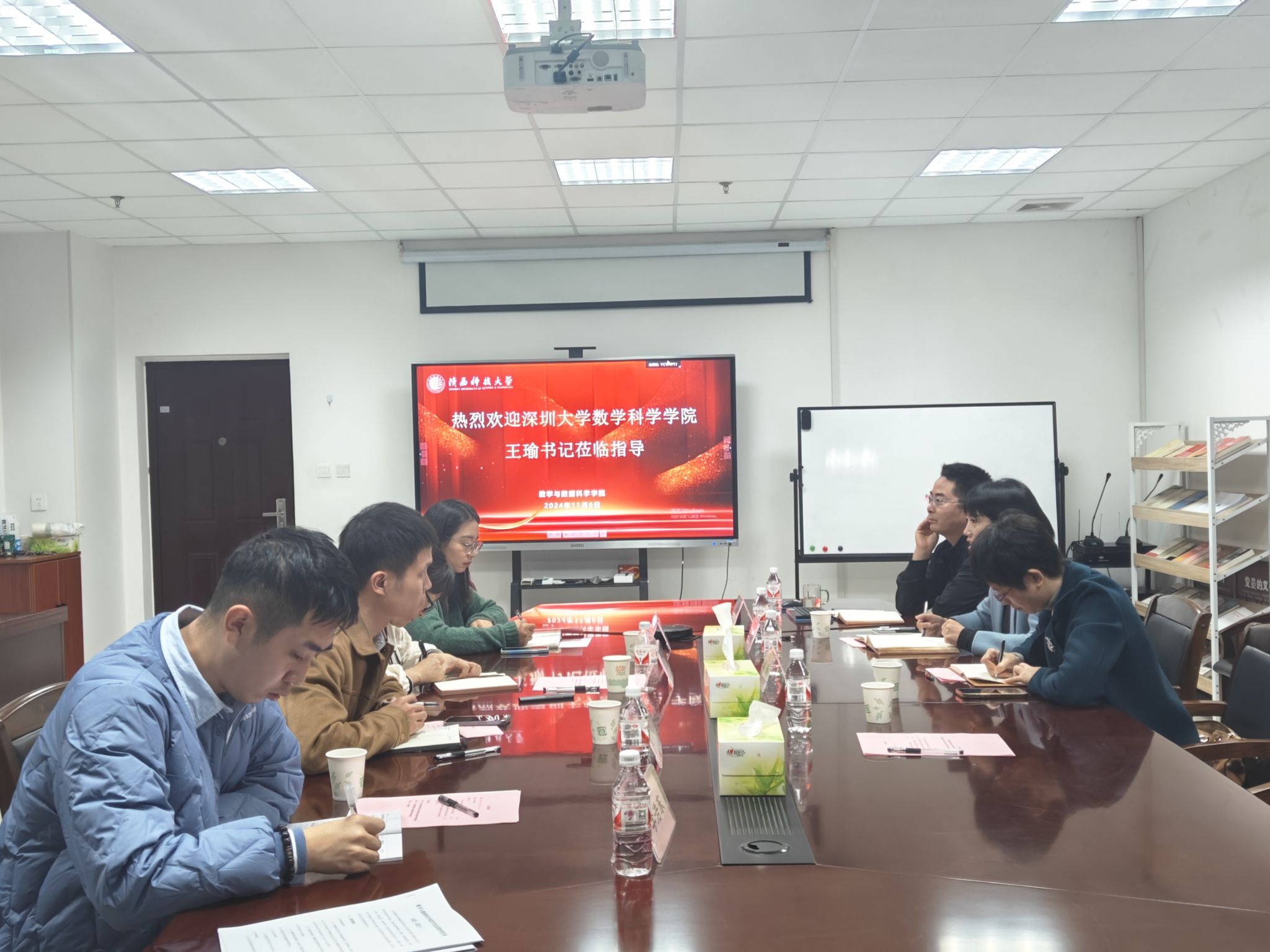 11月6日上午,深圳大學(xué)數(shù)學(xué)科學(xué)學(xué)院黨委書記王瑜來校調(diào)研交流。數(shù)學(xué)與數(shù)據(jù)科學(xué)學(xué)院院長李劍、院長助理宋沛及全體輔導(dǎo)員參加座談,會議由宋沛主持。
