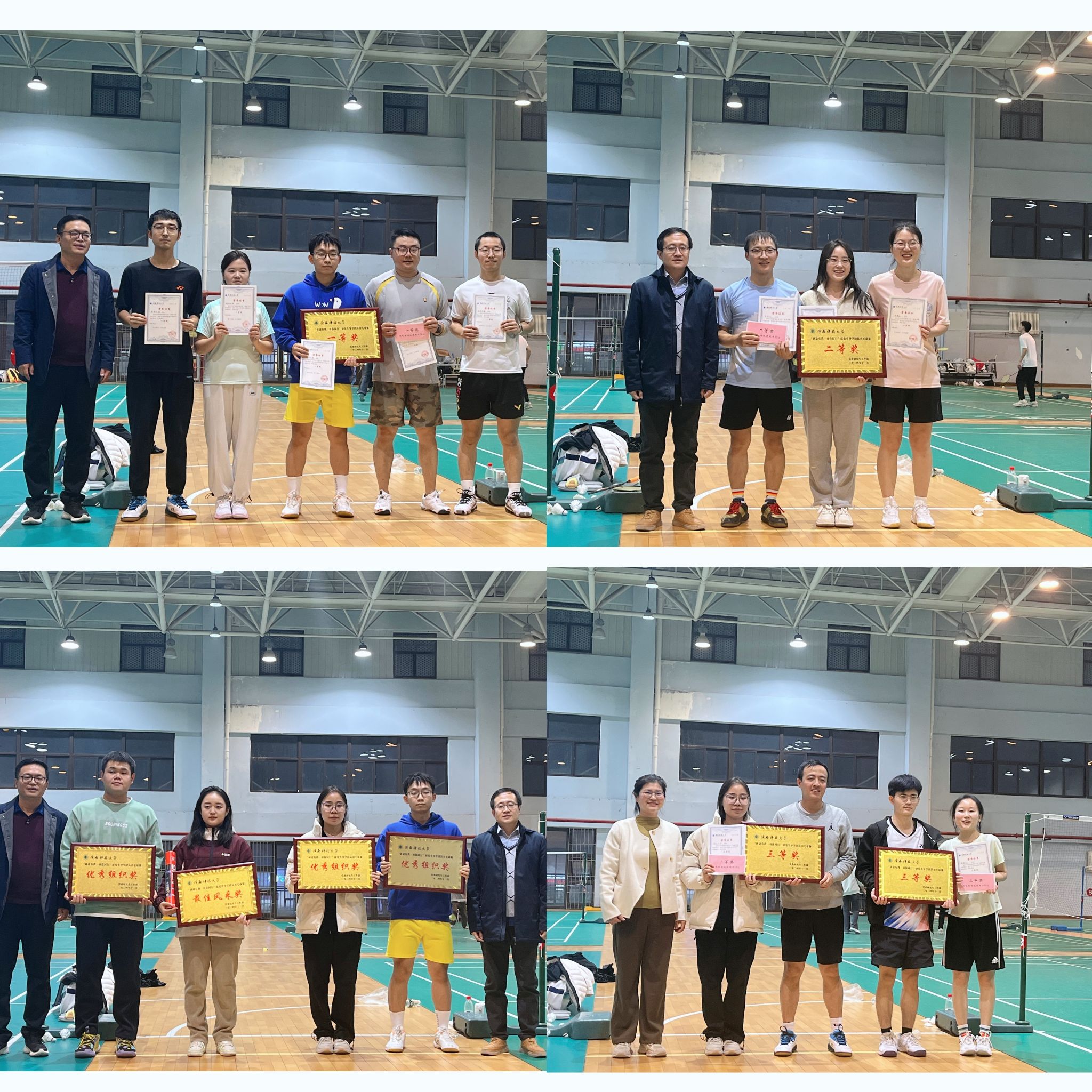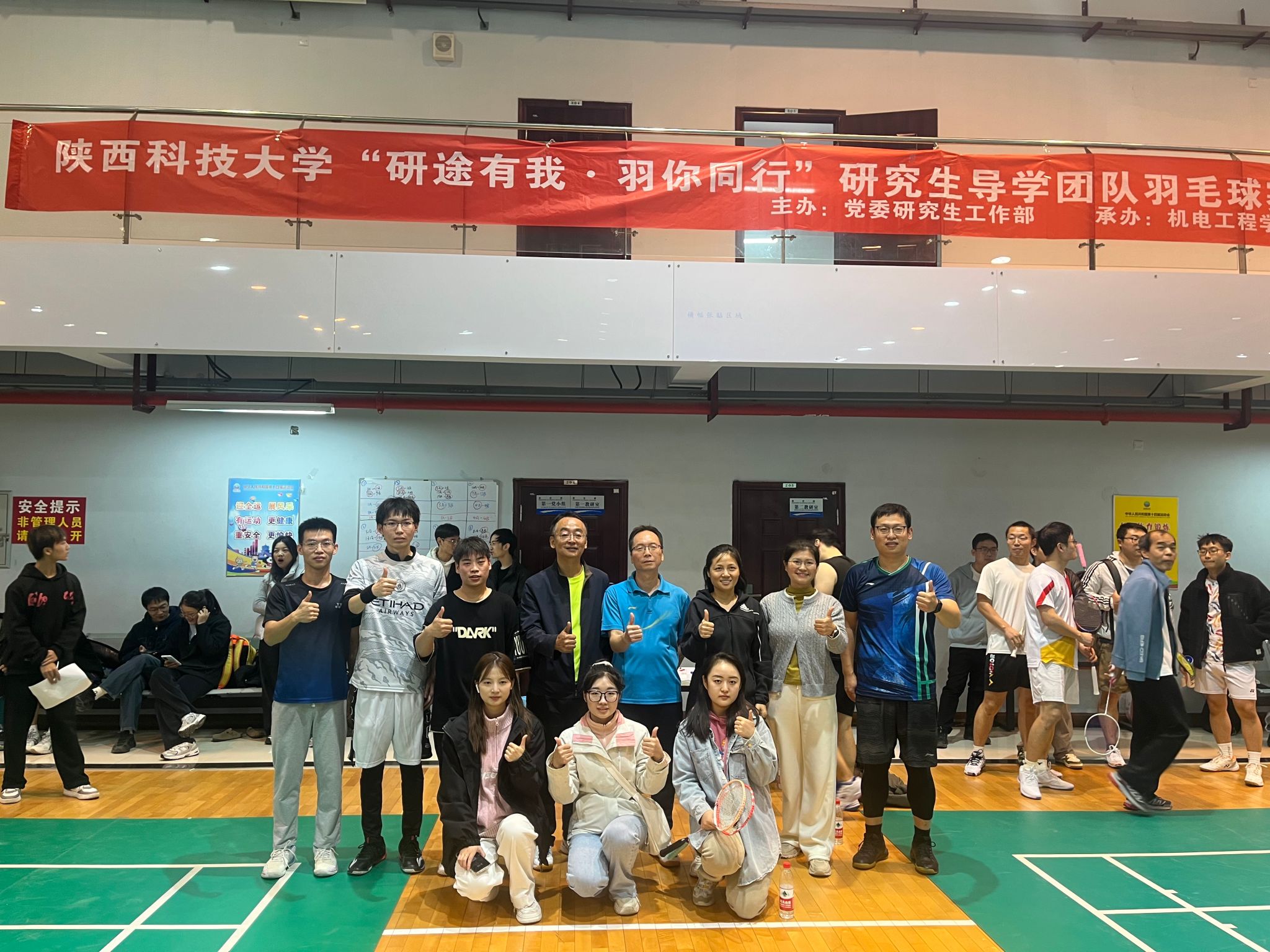 為進(jìn)一步增進(jìn)研究生導(dǎo)師和學(xué)生間的互動(dòng)交流,緩解師生科研壓力,豐富校園文化生活,推動(dòng)和諧良好的導(dǎo)學(xué)關(guān)系建設(shè),近日,由研究生院(黨委研究生工作部)主辦、機(jī)電工程學(xué)院承辦的“研途有我·羽你同行”研究生導(dǎo)學(xué)團(tuán)隊(duì)羽毛球賽在北區(qū)體育館順利舉辦。研究生院、機(jī)電學(xué)院相關(guān)負(fù)責(zé)人出席決賽并為獲獎(jiǎng)團(tuán)隊(duì)頒獎(jiǎng)。比賽采用團(tuán)體積分制,分為混雙賽道和師生賽道。經(jīng)前期精心籌辦,來自14個(gè)學(xué)院的41支導(dǎo)學(xué)團(tuán)隊(duì)踴躍報(bào)名,200余名研究生和導(dǎo)師參賽。經(jīng)過兩輪初賽、淘汰賽,共計(jì)8支隊(duì)伍晉級(jí)。
