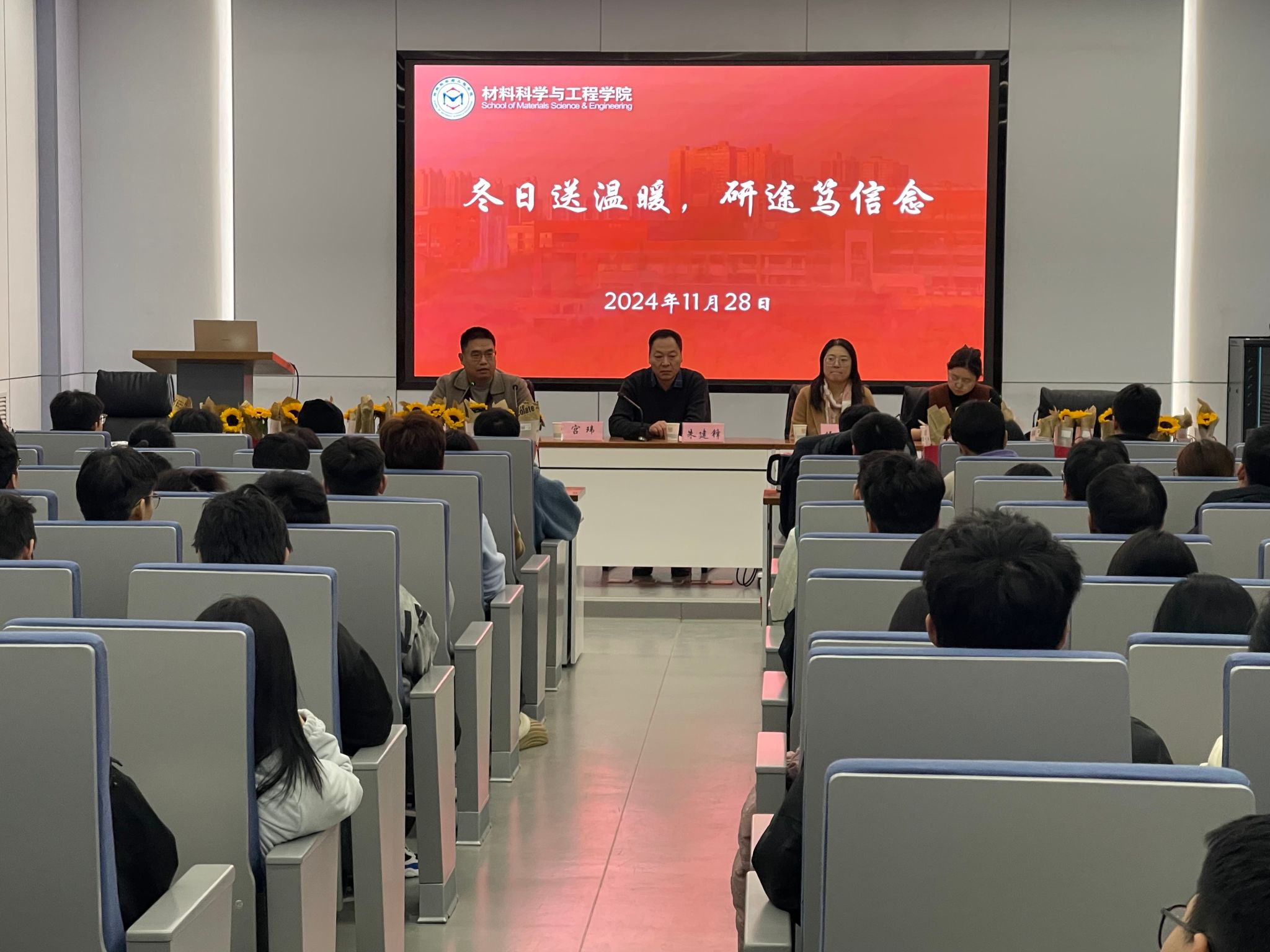 為緩解學生考研壓力,堅定備考信心,鼓舞考研士氣,11月28日下午,材料科學與工程學院(文物保護科學與技術學院)以“冬日送溫暖,研途篤信念”為主題開展考研慰問活動,為2025屆考研學生送上祝福。院長朱建鋒,副院長伍媛婷,2021級輔導員李思雯,2025屆考研學生參加活動,院長助理宮瑋主持。