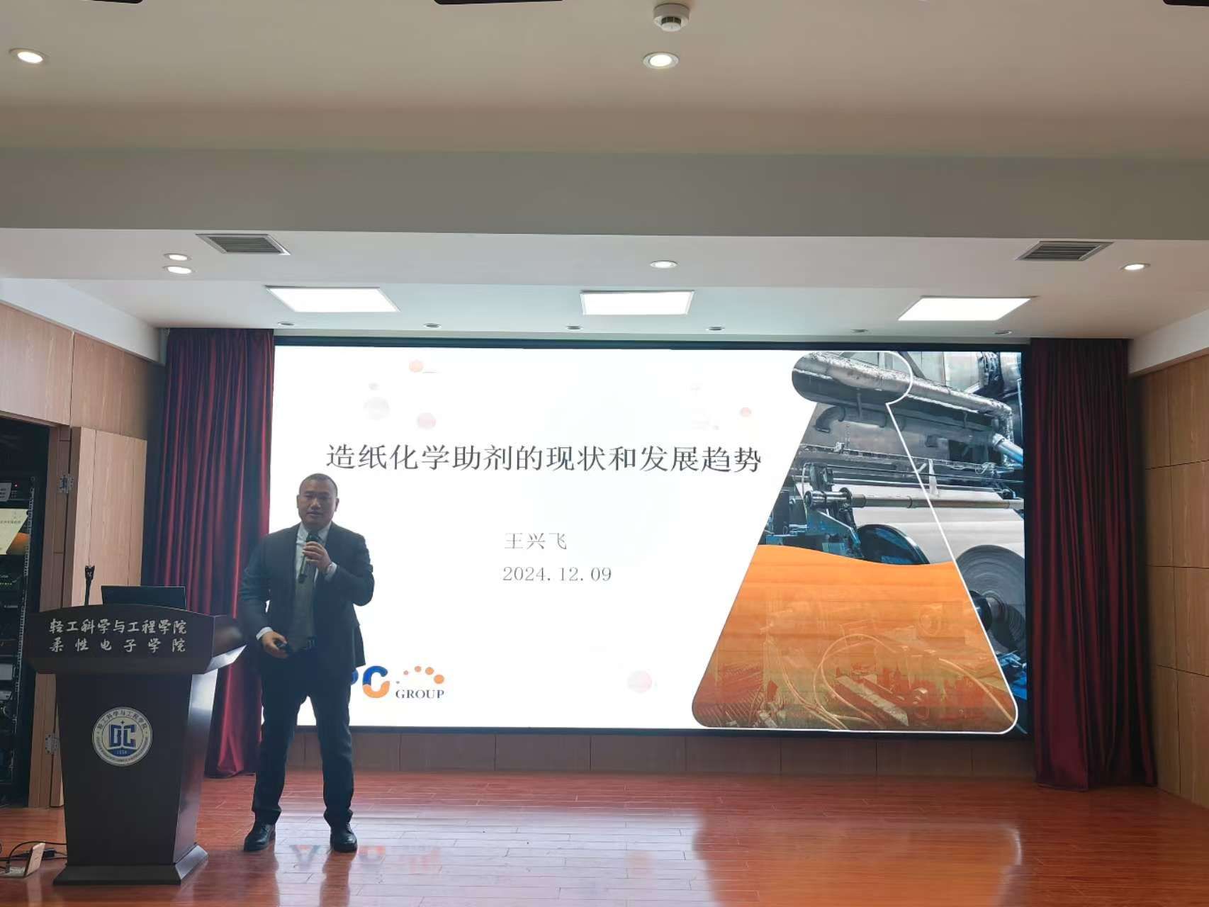 隨后與會(huì)嘉賓為本年度獲得“亞馬遜化工”獎(jiǎng)學(xué)金的27名學(xué)子頒獎(jiǎng)并合影留念。儀式后,王興飛為在場(chǎng)師生做了“造紙化學(xué)助劑的現(xiàn)狀和發(fā)展趨勢(shì)”的分享交流,在答疑互動(dòng)環(huán)節(jié)中,結(jié)合自身工作經(jīng)歷,為在場(chǎng)學(xué)生分享了個(gè)人發(fā)展和職業(yè)規(guī)劃技能,解答了學(xué)生在學(xué)業(yè)和求職中遇到的各種問(wèn)題。