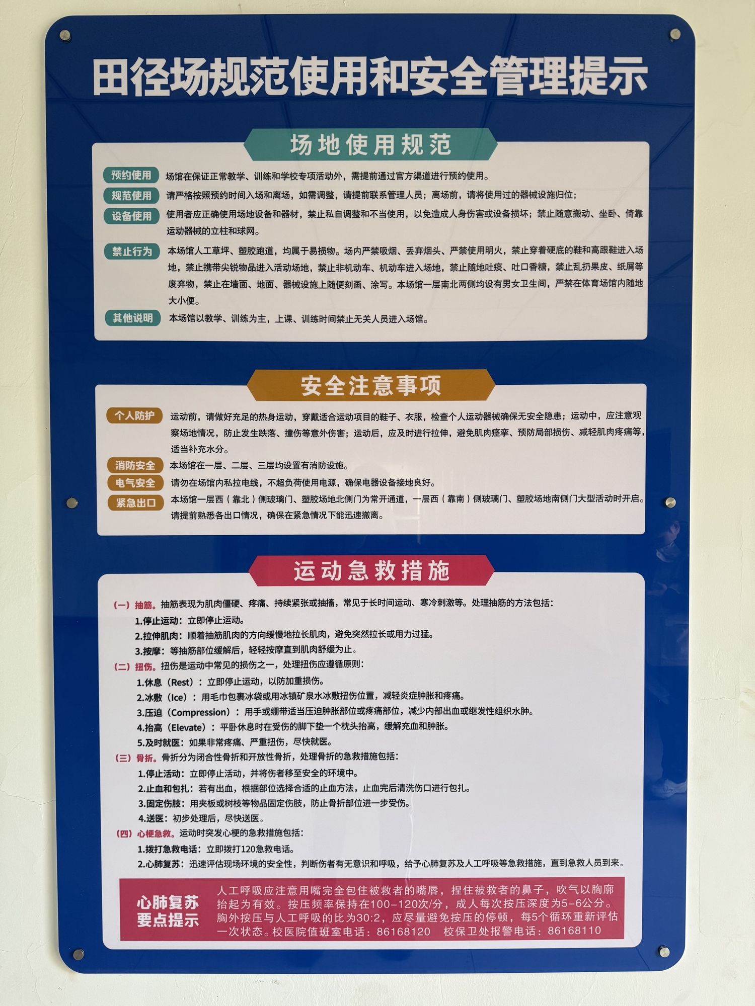 通過一系列科學(xué)系統(tǒng)的安全管理措施,校內(nèi)運(yùn)動場地設(shè)施的安全管理水平得到進(jìn)一步提升。今后體育部將按照“預(yù)防為主,安全第一”的原則,持續(xù)探索和實(shí)踐更多行之有效的安全管理措施,努力構(gòu)建平安和諧的體育運(yùn)動環(huán)境,讓每一位師生都能在安全的環(huán)境中享受運(yùn)動的樂趣。