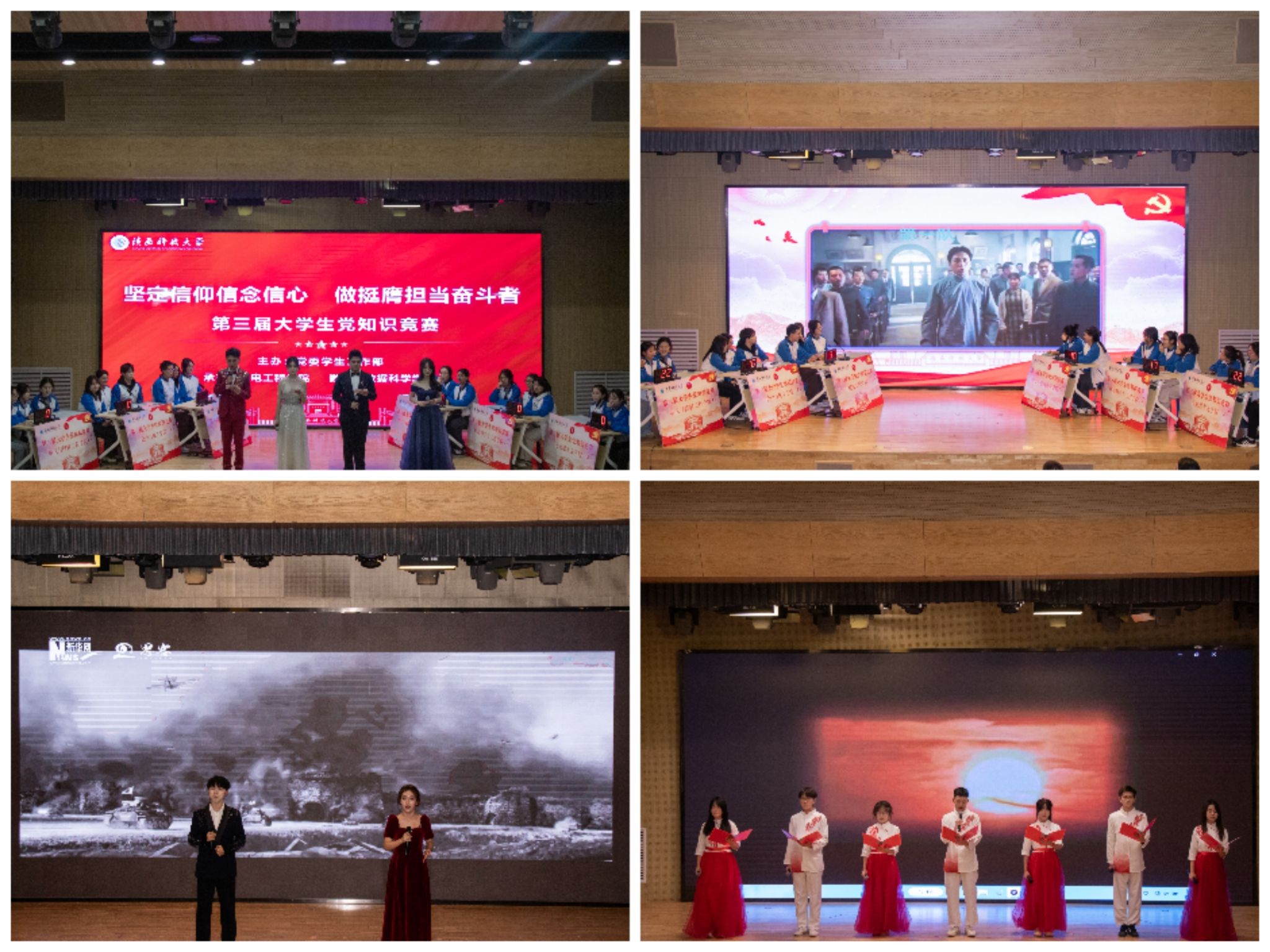 為持續(xù)推動大學(xué)生黨史學(xué)習(xí)教育常態(tài)化長效化,以“堅(jiān)定信仰信念信心、做挺膺擔(dān)當(dāng)奮斗者”為主題的第三屆大學(xué)生黨知識競賽決賽于12月24日晚在設(shè)計(jì)與藝術(shù)學(xué)院小劇場舉辦。黨委組織部、黨委學(xué)工部有關(guān)負(fù)責(zé)人出席活動,有關(guān)學(xué)院黨委副書記、各學(xué)院大學(xué)生黨建專項(xiàng)輔導(dǎo)員及150余名學(xué)生黨員、發(fā)展對象、入黨積極分子代表現(xiàn)場觀摩了決賽。