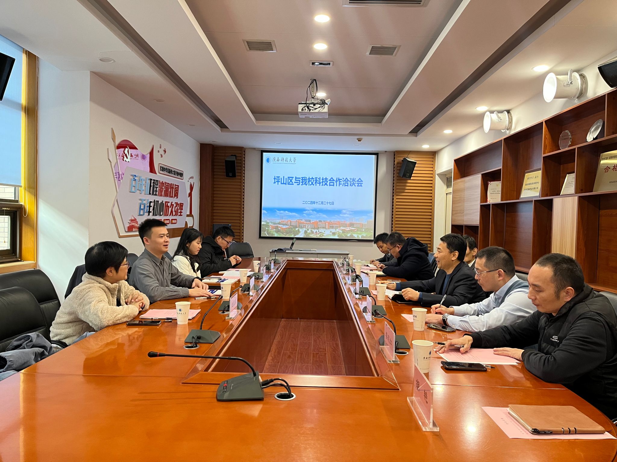 為深入實(shí)施服務(wù)社會(huì)創(chuàng)優(yōu)行動(dòng),促進(jìn)產(chǎn)學(xué)研開放合作。12月27日上午,深圳市坪山區(qū)科技創(chuàng)新局副局長(zhǎng)高坦一行3人來我校洽談科技合作。我校(深圳)技術(shù)轉(zhuǎn)移中心負(fù)責(zé)人趙星翼,輕工科學(xué)與工程學(xué)院、電子信息與人工智能學(xué)院、食品科學(xué)與工程學(xué)院相關(guān)人員參加座談。會(huì)議由前沿科學(xué)與技術(shù)轉(zhuǎn)移研究院副院長(zhǎng)張鵬偉主持。