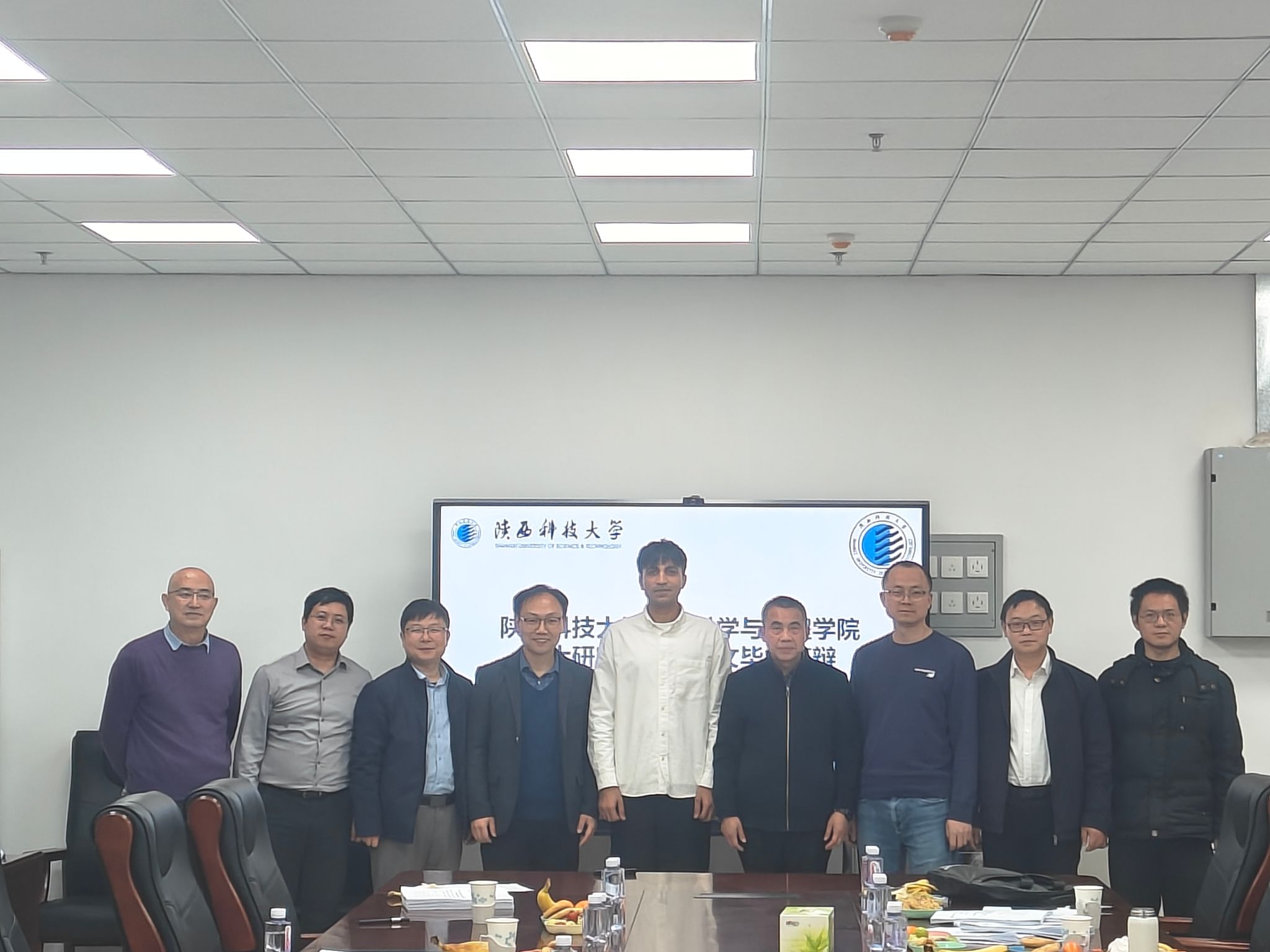 王傳義教授(右四)與留學(xué)生阿迪(左五)在環(huán)境學(xué)院畢業(yè)答辯現(xiàn)場