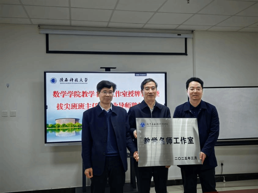 活動現(xiàn)場,李劍為數(shù)學(xué)學(xué)院教學(xué)名師工作室負(fù)責(zé)人藺小林教授和白云霄教授授牌。數(shù)學(xué)教學(xué)的高質(zhì)量發(fā)展,離不開優(yōu)秀教師的引領(lǐng)與傳承。教學(xué)名師工作室的成立,是學(xué)院打造高水平教學(xué)團(tuán)隊、推動教學(xué)創(chuàng)新的重要舉措。