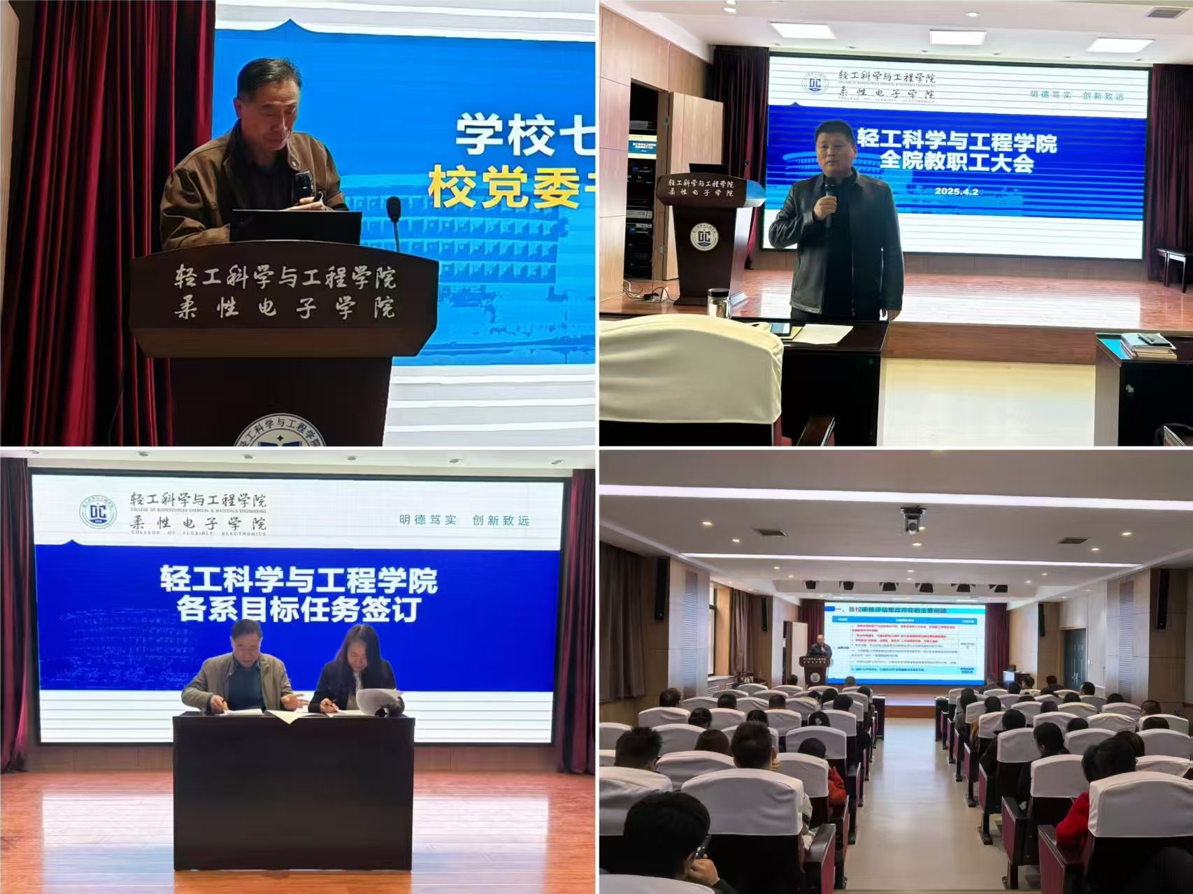 4月2日,輕工科學(xué)與工程學(xué)院(柔性電子學(xué)院)組織召開全院教職工大會,深入解讀學(xué)院2025年重點工作“15511”實施方案,聚焦重點謀劃部署學(xué)院2025年工作。會議由輕工學(xué)院院長呂斌主持。