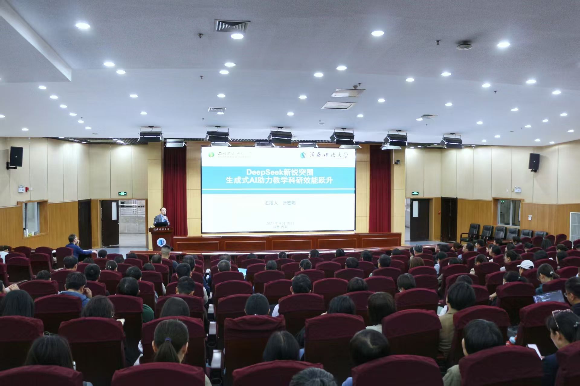 為落實(shí)學(xué)校七屆四次“雙代會(huì)”精神,扎實(shí)推進(jìn)我校2025年工作要點(diǎn),積極探索“人工智能+”教育教學(xué)新模式,提升我校教師教學(xué)科研能力,教師發(fā)展中心“人工智能賦能教育教學(xué)創(chuàng)新”系列專(zhuān)題培訓(xùn)拉開(kāi)帷幕。首場(chǎng)報(bào)告特邀陜西省教學(xué)名師、西北農(nóng)林科技大學(xué)張宏鳴教授作題為《DeepSeek新銳突圍,生成式AI助力教學(xué)科研效能躍升》的專(zhuān)題報(bào)告。報(bào)告會(huì)由教師發(fā)展中心常務(wù)副主任徐永建主持,我校300余名教師聆聽(tīng)了此次報(bào)告會(huì)。