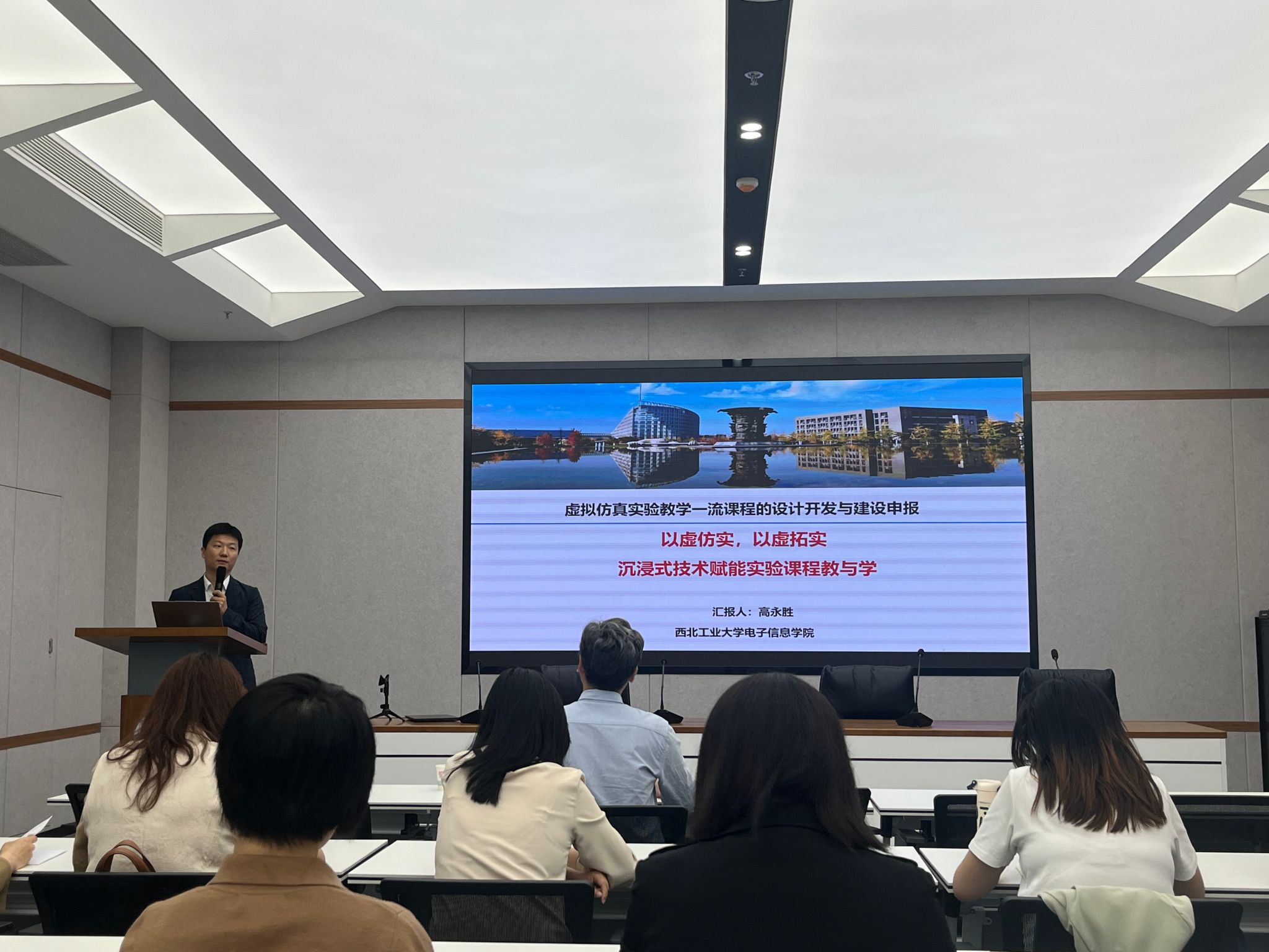 會上,高永勝以《虛擬仿真實驗教學(xué)一流課程的設(shè)計開發(fā)與建設(shè)申報》為題,結(jié)合西北工業(yè)大學(xué)的典型建設(shè)案例,從課程設(shè)計邏輯、技術(shù)實現(xiàn)路徑、教學(xué)模式創(chuàng)新等維度,分享了課程建設(shè)經(jīng)驗與實踐心得。隨后,2024年校級立項的6位課程負責(zé)人分別圍繞課程建設(shè)情況、取得的建設(shè)成效、存在的問題以及下一步建設(shè)思路等方面依次進行了匯報。高永勝逐一對課程建設(shè)情況進行點評,他充分肯定了多數(shù)課程團隊在課程框架搭建、教學(xué)場景模擬等方面取得的成效,認為階段性成果亮點突出。同時,也從專業(yè)視角指出共性問題:教學(xué)資源整合不足、應(yīng)用深度欠缺;課程設(shè)計在高階性、創(chuàng)新性和挑戰(zhàn)度的呈現(xiàn)上有待加強;申報材料的邏輯架構(gòu)與亮點提煉需要提升。這些專業(yè)建議為后續(xù)課程優(yōu)化指明了方向。