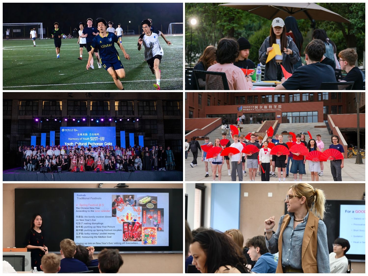 本次訪學(xué)活動(dòng)涵蓋學(xué)術(shù)交流、文化體驗(yàn)、學(xué)生活動(dòng)三大板塊。訪學(xué)團(tuán)成員參與我校專(zhuān)業(yè)、英語(yǔ)課程學(xué)習(xí),體驗(yàn)武術(shù)、剪紙、漢服等中國(guó)傳統(tǒng)文化項(xiàng)目,并通過(guò)足球友誼賽、乒乓球交流賽及文藝晚會(huì)等活動(dòng),與我校師生建立了深厚友誼。