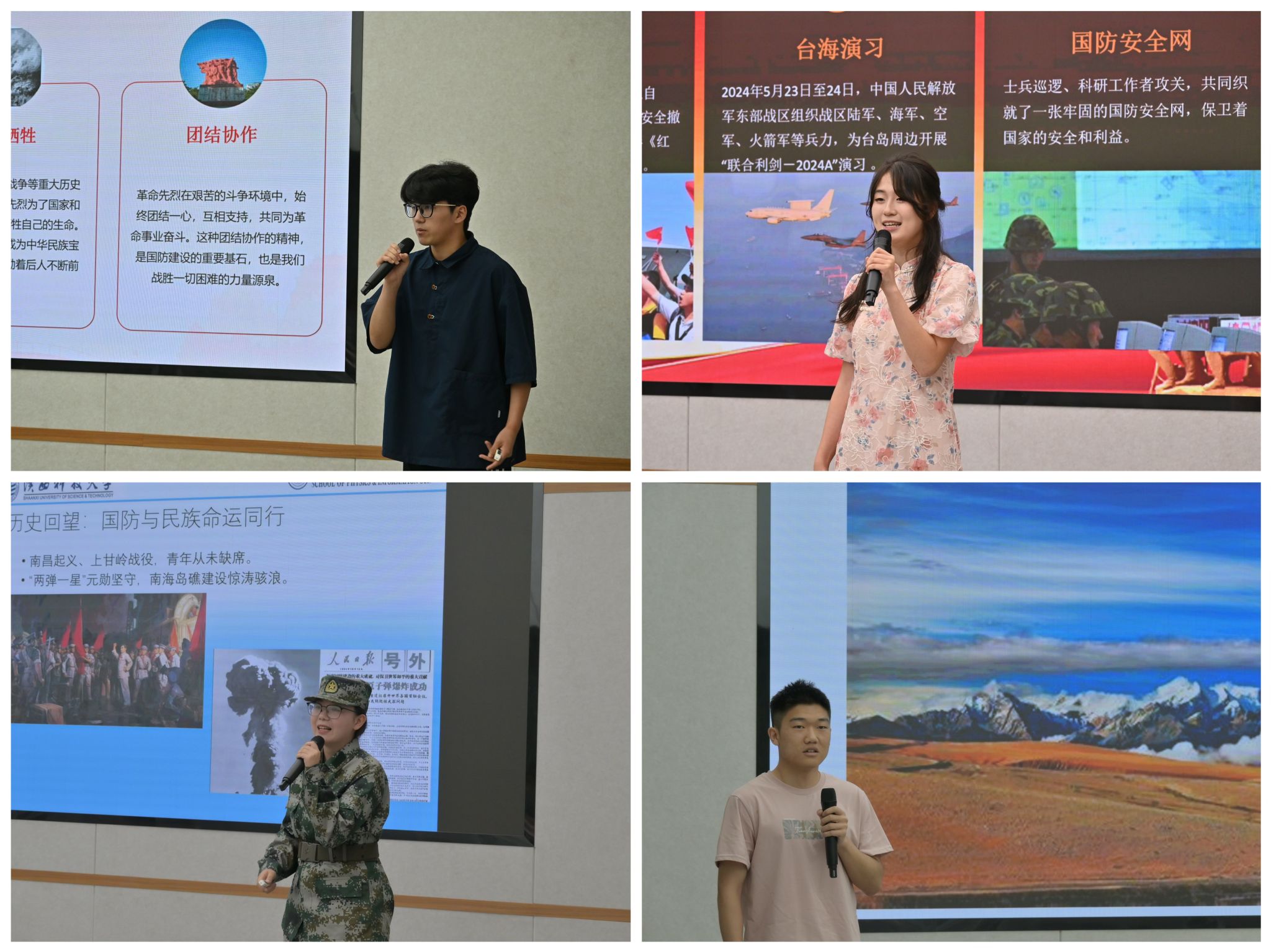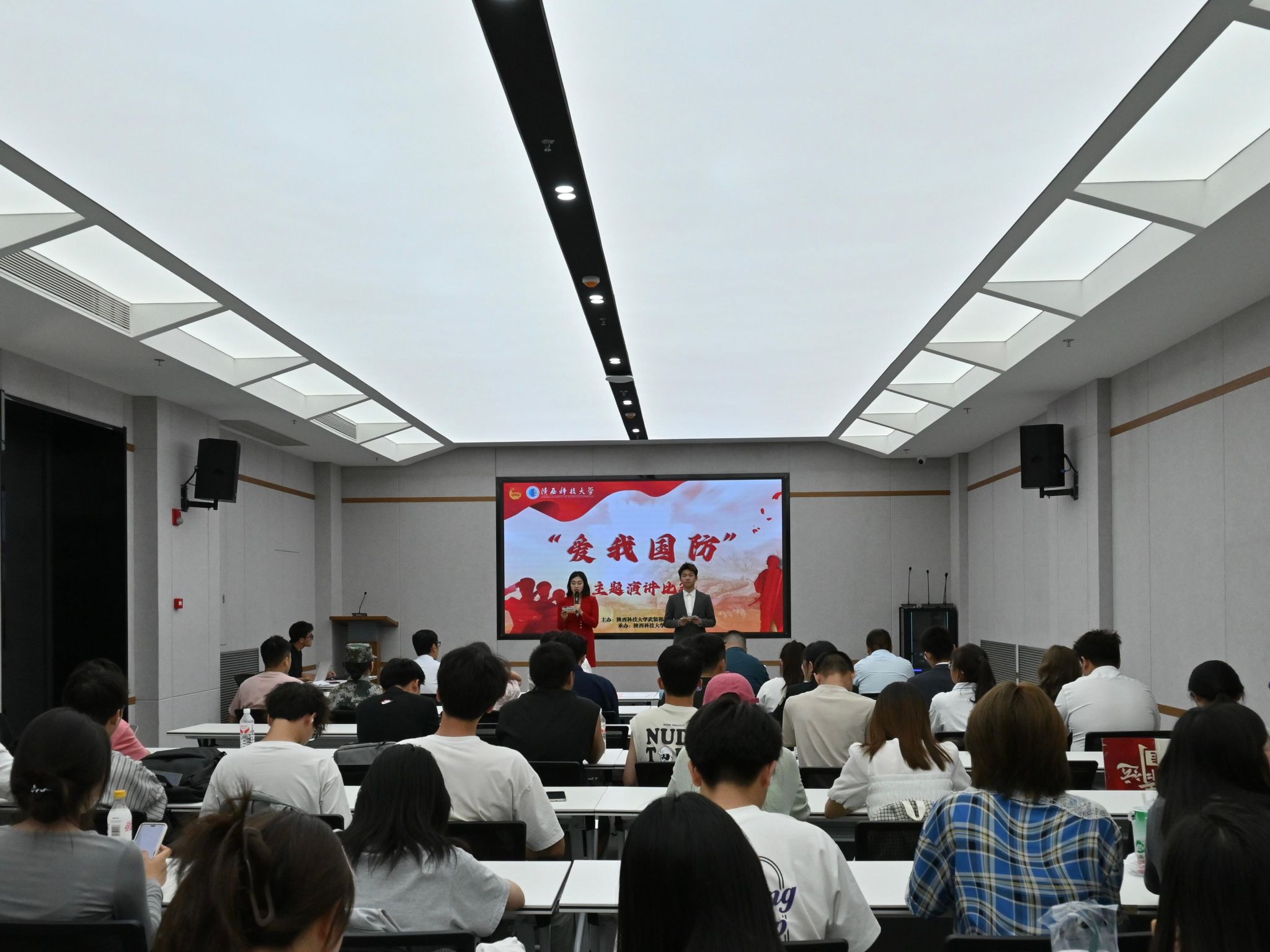 5月20日下午,陜西科技大學(xué)2025“愛我國防”大學(xué)生演講比賽決賽在至博會議室舉辦,本次活動由學(xué)工部、武裝部、校團委主辦,校學(xué)生會承辦。來自12個學(xué)院的12名選手經(jīng)過學(xué)院初賽選拔進入校級決賽,校團委、統(tǒng)戰(zhàn)部、武裝部、宣傳部相關(guān)老師參加本次活動并擔(dān)任評委,100余名學(xué)生現(xiàn)場觀看了演講比賽。
