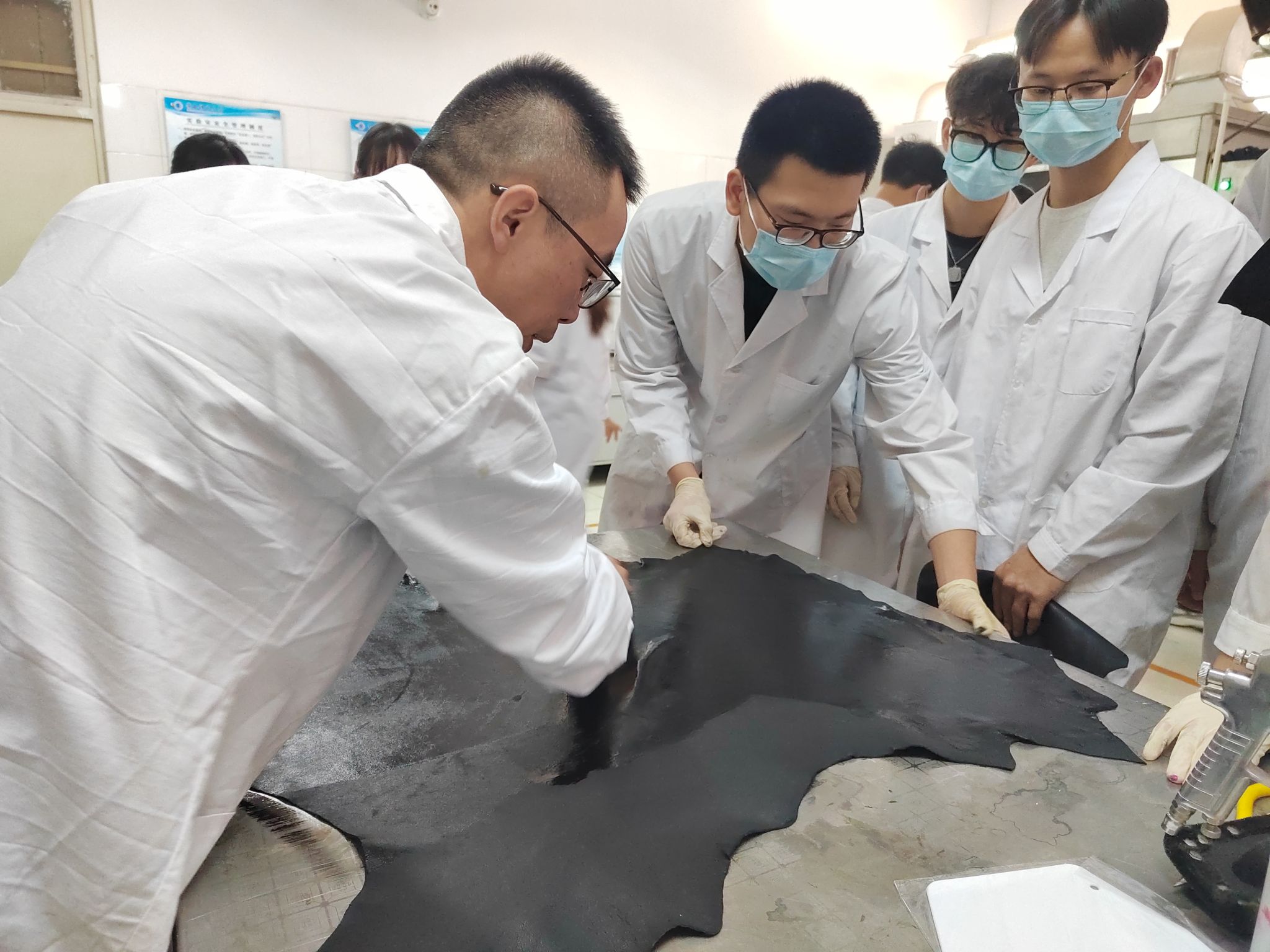 交流期間,夏敏、涂剛和費(fèi)必江給輕化工程專(zhuān)業(yè)(皮革)師生做了主題報(bào)告, 分別為斯塔爾公司介紹、皮革市場(chǎng)最新發(fā)展以及市場(chǎng)流行皮革產(chǎn)品涂飾方案。隨 后,在學(xué)院專(zhuān)業(yè)實(shí)驗(yàn)室,夏經(jīng)理、涂經(jīng)理、費(fèi)經(jīng)理手把手地指導(dǎo)學(xué)生完成扎染、 油蠟、納帕三種皮革涂飾效應(yīng)的制作。在整個(gè)實(shí)驗(yàn)過(guò)程中,學(xué)生積極思考、參與 度極高,把自己的奇思妙想融入實(shí)驗(yàn)中,深度體驗(yàn)并踐行了皮革涂飾“技術(shù)與藝 術(shù)融合”的理念。