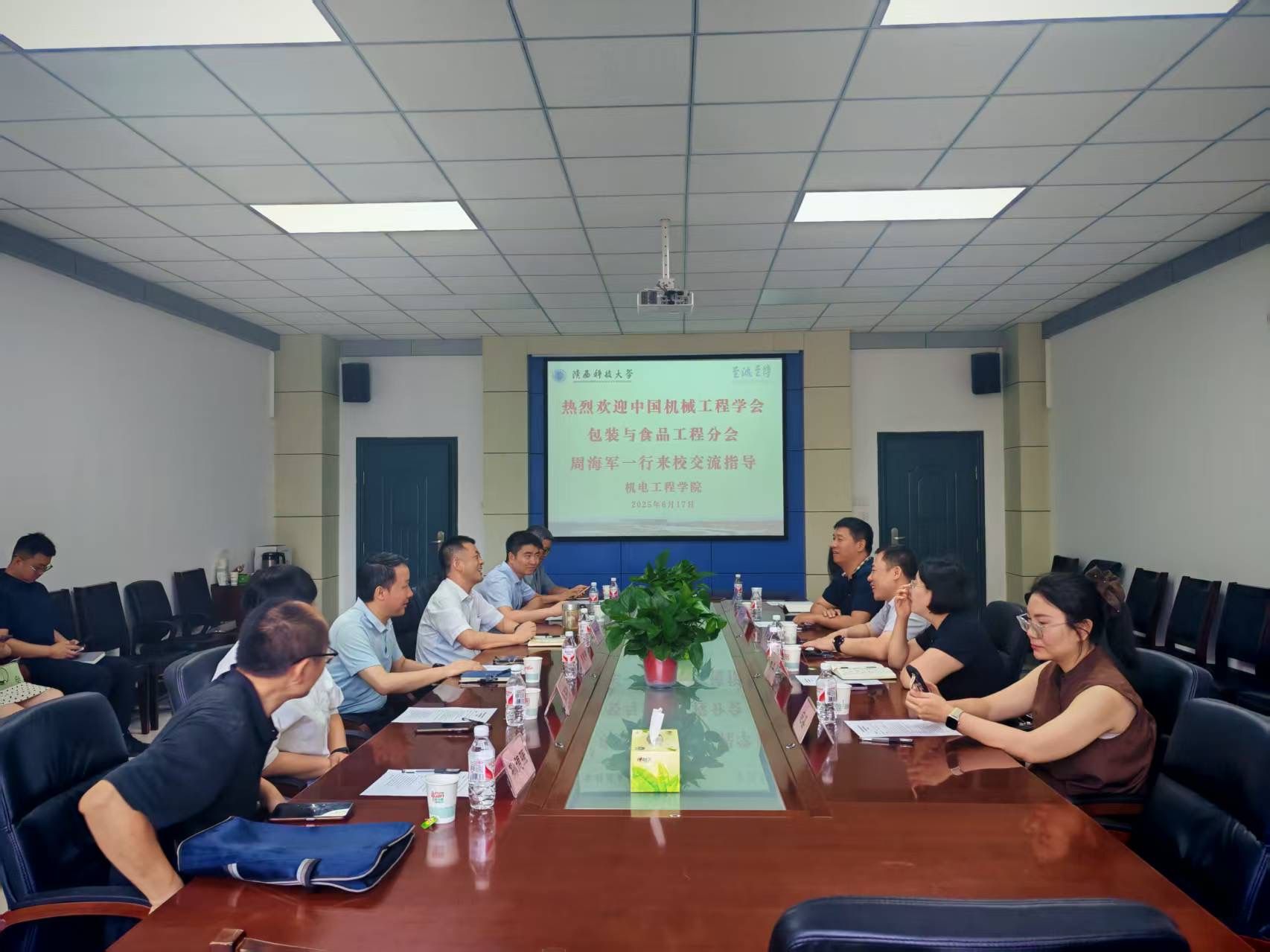 6月17日,中國機械工程學會包裝與食品工程分會主任委員周海軍、秘書長趙丹和中國包裝和食品機械有限公司副總經理王世光一行來機電工程學院座談交流。此次交流會由學院副院長袁越錦主持,院長楊立軍、副院長何乃如,食品科學與工程學院莫海珍教授、輕工科學與工程學院孫德強教授等相關學院領導和教師參加了交流活動。