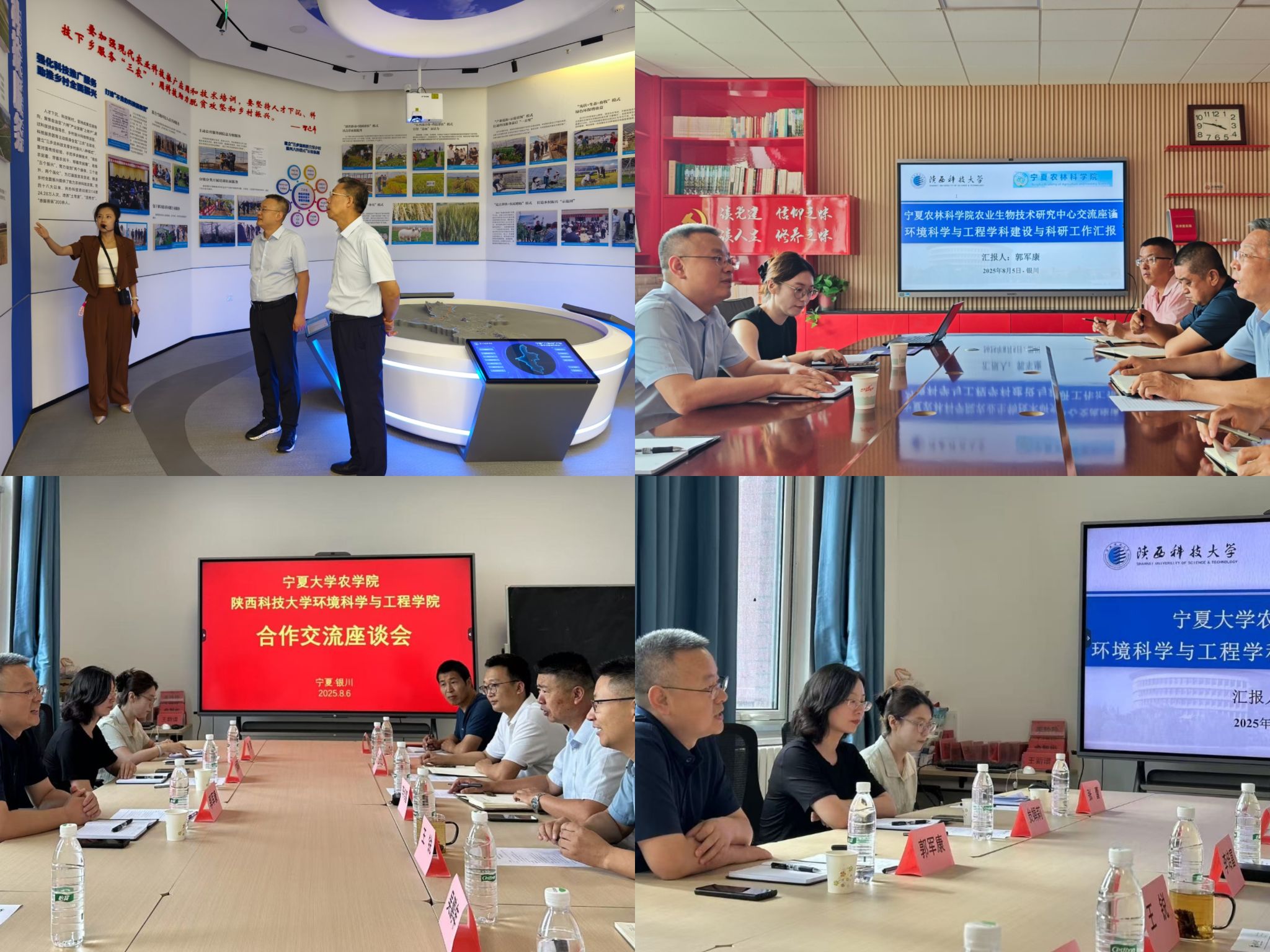 郭軍康一行先后走訪了寧夏農(nóng)林科學(xué)院農(nóng)業(yè)生物技術(shù)研究中心與寧夏大學(xué)農(nóng)學(xué)院,參觀了院史館及科研實(shí)驗(yàn)平臺(tái),詳細(xì)介紹了我校辦學(xué)歷史,學(xué)院的基本情況以及近年來在人才培養(yǎng)、科學(xué)研究、學(xué)科建設(shè)等方面取得的成績(jī)。雙方將圍繞鹽堿地生態(tài)修復(fù)、農(nóng)業(yè)廢棄物資源化新技術(shù)、特色農(nóng)產(chǎn)品產(chǎn)地環(huán)境安全等領(lǐng)域,在科研平臺(tái)共建、區(qū)域科技項(xiàng)目申報(bào)、成果轉(zhuǎn)化推廣、人才聯(lián)合培養(yǎng)等方面開展深度合作。