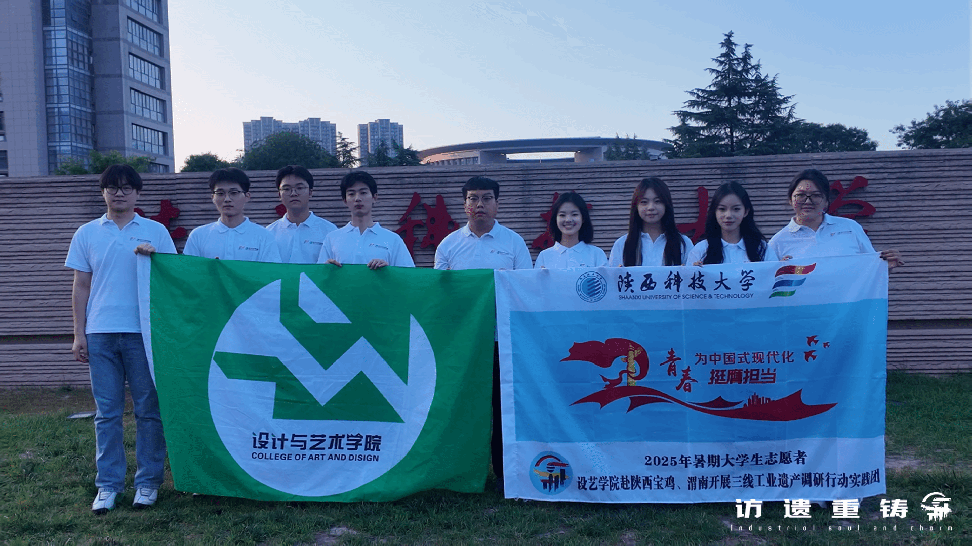 設(shè)計與藝術(shù)學(xué)院訪遺重鑄實(shí)踐團(tuán)于暑期深入陜西四市,以“喚醒三線工業(yè)遺產(chǎn)的靈魂與魅力”為目的,探訪了西北林業(yè)機(jī)械廠、寶雞長樂塬抗戰(zhàn)工業(yè)遺址等 6 處三線工業(yè)遺產(chǎn)。團(tuán)隊通過設(shè)計學(xué) IP 形象開發(fā)、播音專業(yè)紀(jì)錄片解說、編導(dǎo)專業(yè)影像記錄等方式,完成遺產(chǎn)點(diǎn)的立體化建檔。當(dāng)蒲城時間博物館的數(shù)字化展陳呈現(xiàn)“北京時間”源頭,風(fēng)雷儀表廠的生產(chǎn)日志化作影視基地的新生敘事時,實(shí)踐團(tuán)深刻領(lǐng)悟到工業(yè)遺產(chǎn)保護(hù)的深遠(yuǎn)意義,更加堅定了以青年創(chuàng)新之力激活三線精神、賦能遺產(chǎn)新生的決心與信心。