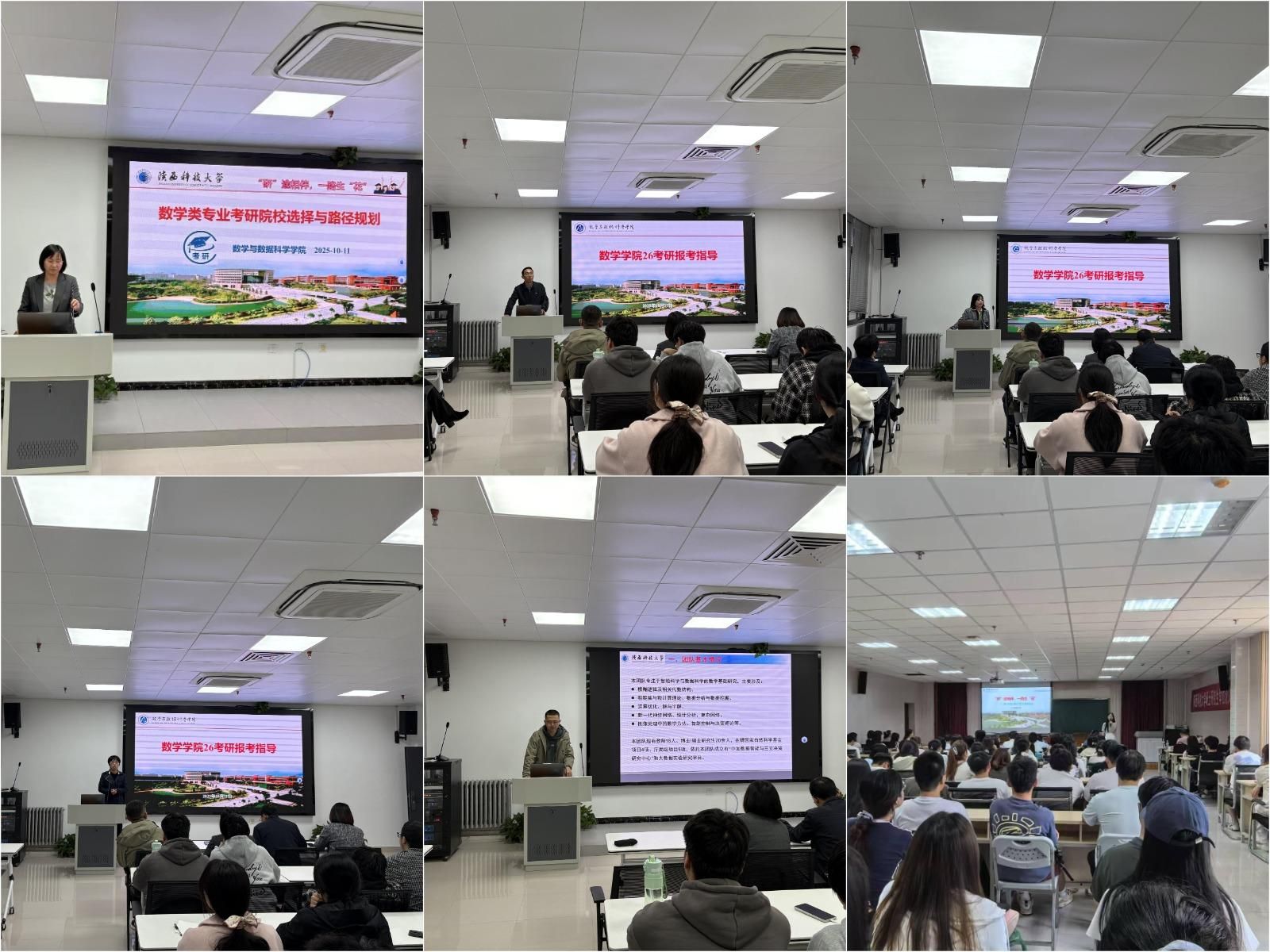 前置指導(dǎo)服務(wù),構(gòu)建全程體系。學(xué)院高度重視人才培養(yǎng)工作,將考研指導(dǎo)服務(wù)作為“一把手工程”強(qiáng)力推進(jìn)。今年6月,依托學(xué)院第四屆求職訓(xùn)練營,先后開展了兩場主題鮮明、內(nèi)容豐富的考研指導(dǎo)活動。6月12日,舉辦“數(shù)學(xué)類專業(yè)考研方向選擇與路徑規(guī)劃”專題講座,郭改慧圍繞精準(zhǔn)定位、科學(xué)規(guī)劃、高效備考等關(guān)鍵議題,系統(tǒng)剖析數(shù)學(xué)學(xué)科考研形勢,引導(dǎo)學(xué)生樹立梯度化報考目標(biāo)、合理規(guī)劃復(fù)習(xí)進(jìn)度。6月15日,學(xué)院邀請華中科技大學(xué)、陜西師范大學(xué)、西安電子科技大學(xué)、西北大學(xué)、山西大學(xué)等十余所省內(nèi)外高校數(shù)學(xué)學(xué)科負(fù)責(zé)人來校交流,各高校代表詳細(xì)介紹了本校數(shù)學(xué)學(xué)科特色、招生政策、備考建議等,并在交流環(huán)節(jié)為學(xué)生答疑解惑,幫助學(xué)生明確報考目標(biāo)、明晰備考方向。