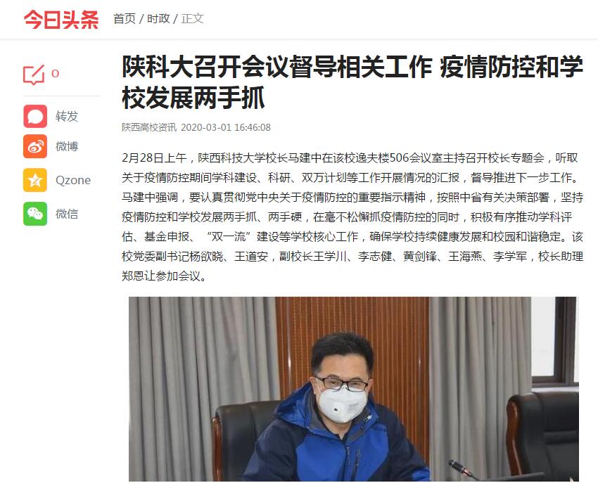 今日頭條APP:陜科大召開會議督導(dǎo)相關(guān)工作 疫情防控和學(xué)校發(fā)展兩手抓