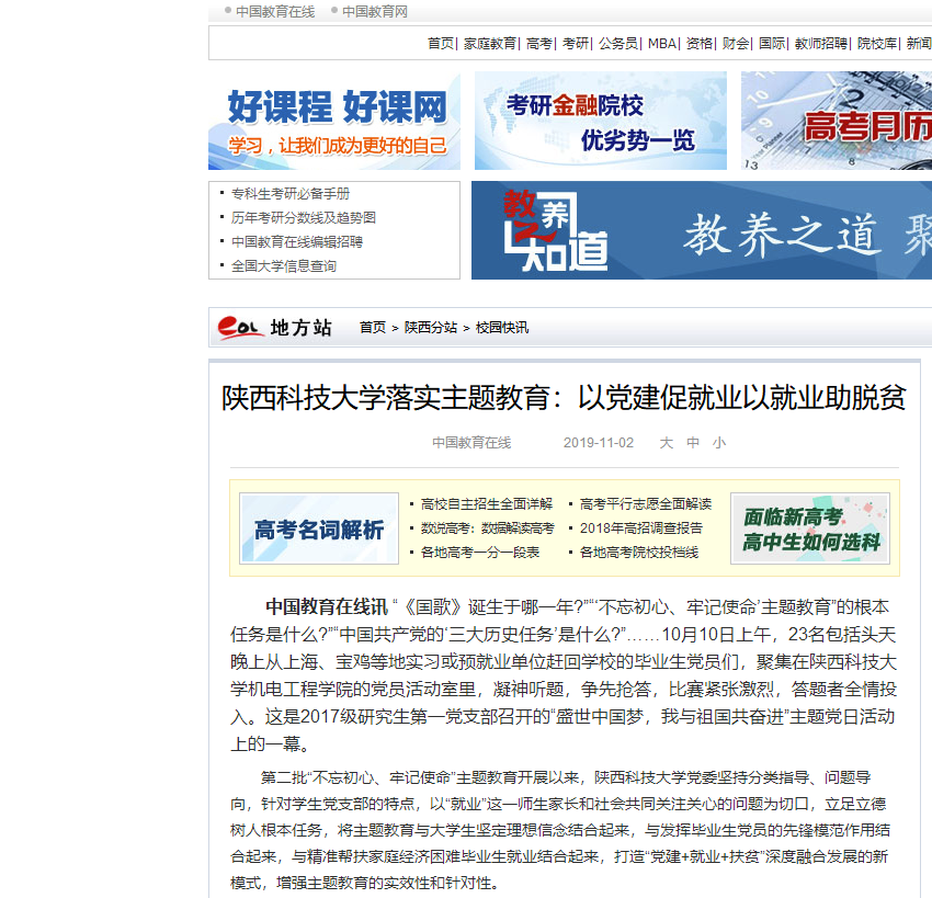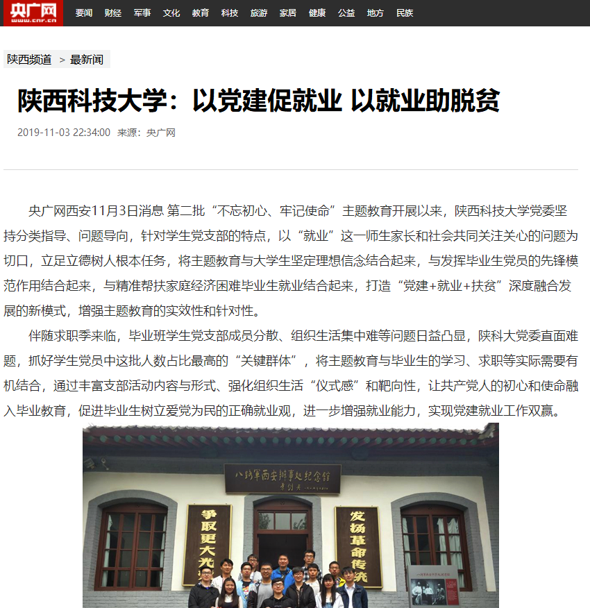 中國教育網:陜西科技大學落實主題教育 以黨建促就業(yè)以就業(yè)助脫貧