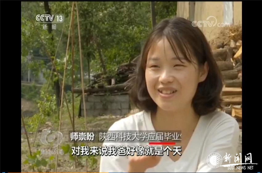 “這個愛笑的女生叫師崇盼,是陜西科技大學經濟與管理學院市場營銷專業(yè)的應屆畢業(yè)生?!瓗煶缗问且幻麃碜赞r村的貧困生……輔導員了解到師崇盼的具體情況后,就反映到了學校學工部的學生資助管理中心。中心工作人員經過核實確認,把師崇盼定為了“建檔立卡”的貧困生……”這是中央電視臺《焦點訪談》欄目今年專訪陜科大幫扶家庭經濟困難學生就業(yè)工作播出的一段采訪內容。