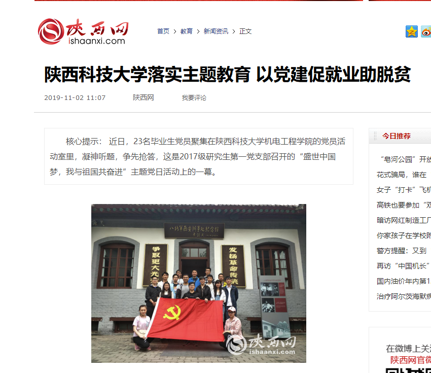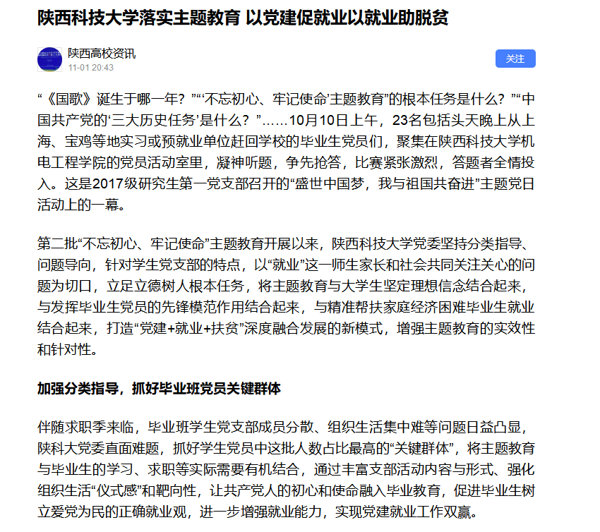 陜西網:陜西科技大學落實主題教育 以黨建促就業(yè)助脫貧