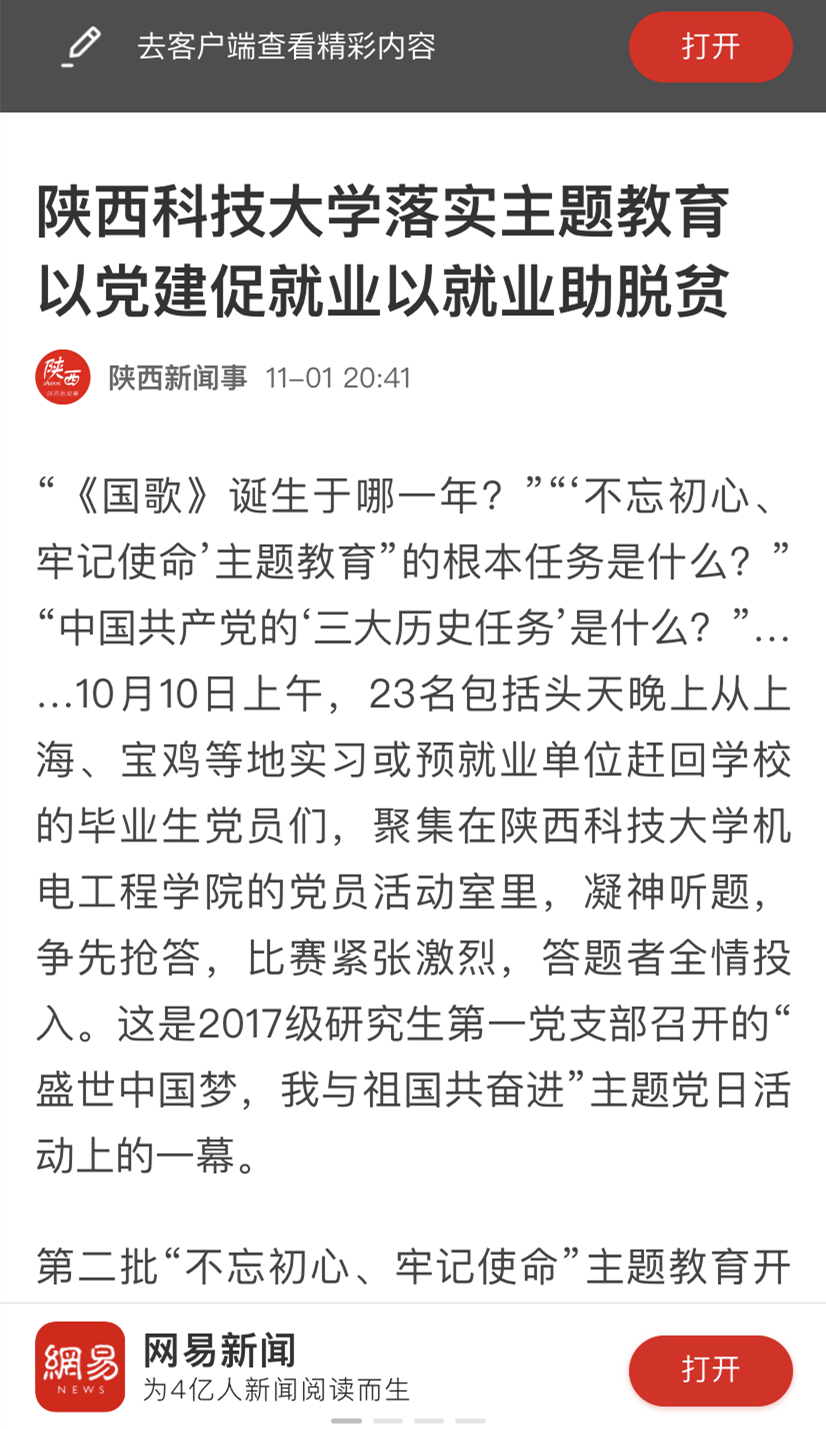 網易新聞:陜西科技大學落實主題教育 以黨建促就業(yè)以就業(yè)助脫貧
