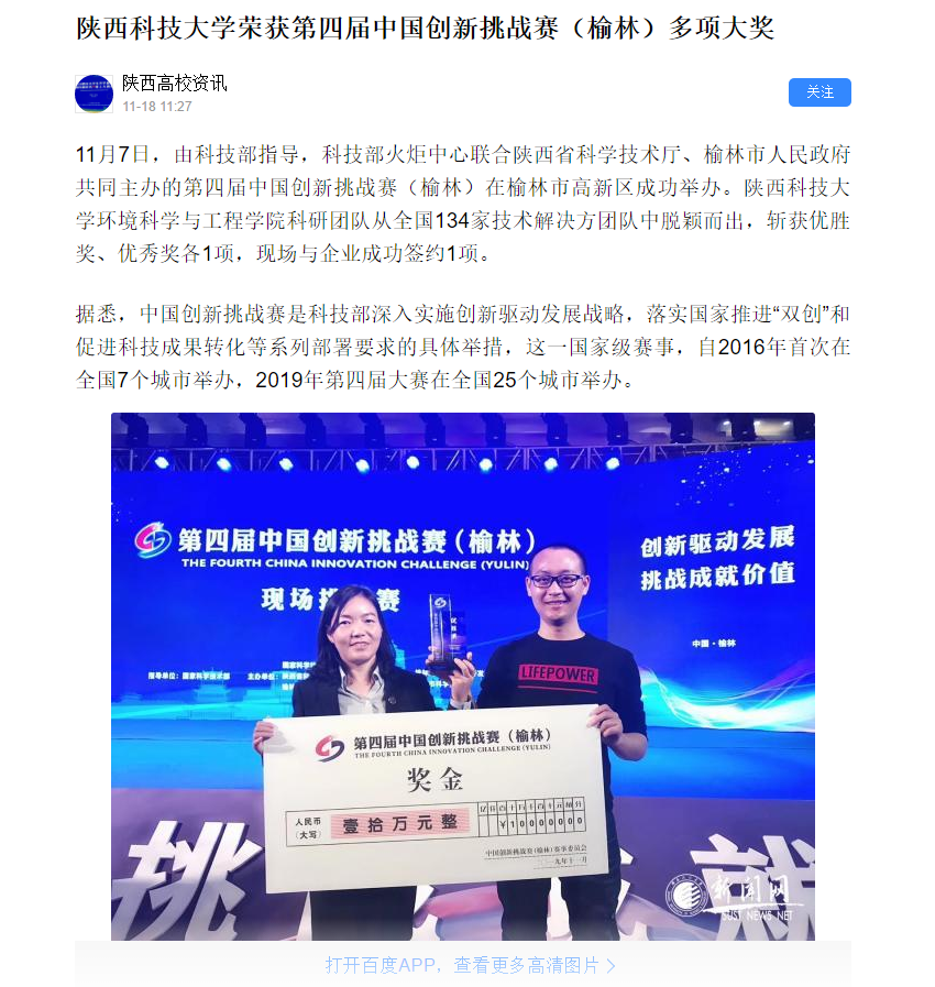 人民日?qǐng)?bào)APP:陜西科技大學(xué)榮獲第四屆中國(guó)創(chuàng)新挑戰(zhàn)賽(榆林)多項(xiàng)大獎(jiǎng)