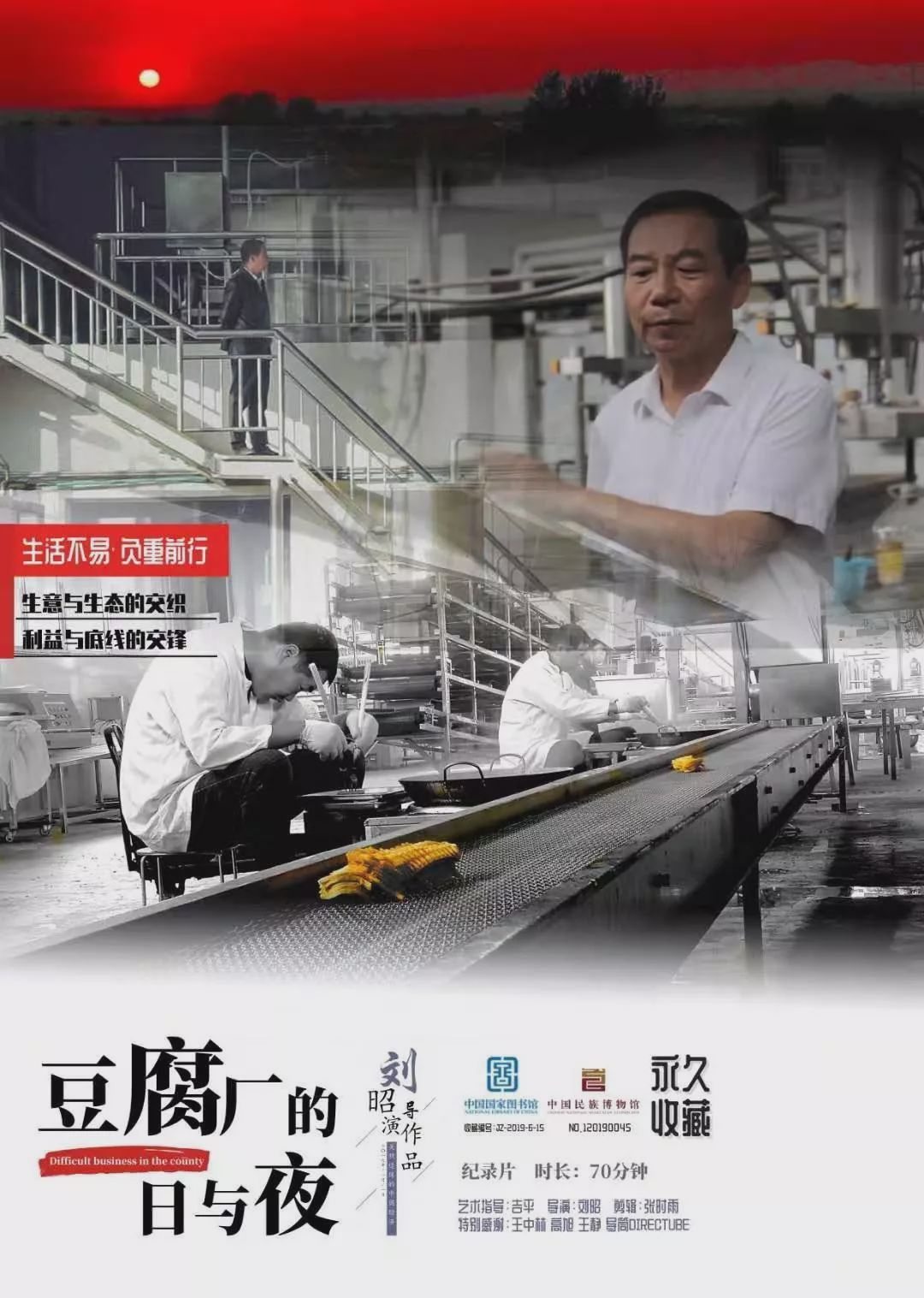 由陜西科技大學(xué)設(shè)計與藝術(shù)學(xué)院編導(dǎo)教研室吉平副教授指導(dǎo),2019屆廣播電視方向碩士研究生劉昭創(chuàng)作的畢業(yè)作品《豆腐廠的日與夜》獲收藏獎,并入選國家圖書館中國記憶項目,被國家圖書館和中國民族博物館永久收藏。