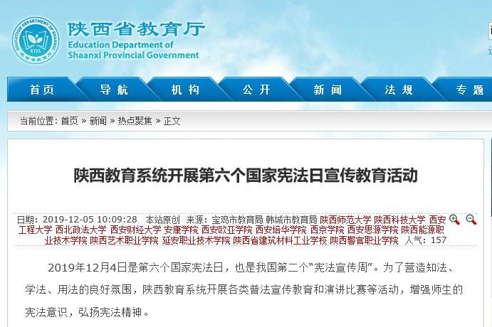 陜西教育系統(tǒng)開(kāi)展第六個(gè)國(guó)家憲法日宣傳教育活動(dòng)
